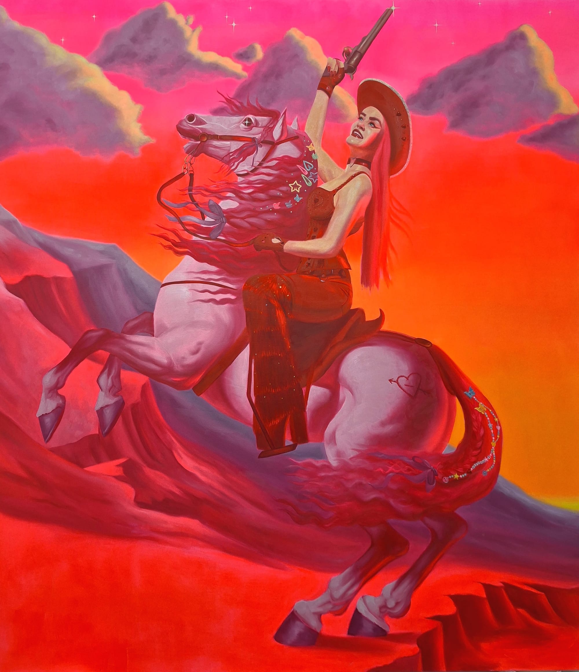 Commemorating the lucky 13th edition in NYC, Spring Break has traded in the checkered floors of the former Ralph Lauren headquarters for a new space in Hudson Square to present INT./EXT. (interior/exterior) — a call for artists to externalize what lives within them, explore how parallels become intersections, and transform boundaries into gray areas, especially acknowledging the “perpetual and unconscionable wartime in our country.” As it is with Spring Break, kitsch, quirk, humor, arbitrary color, and intimacy will take center stage during this time of processing and reflection.