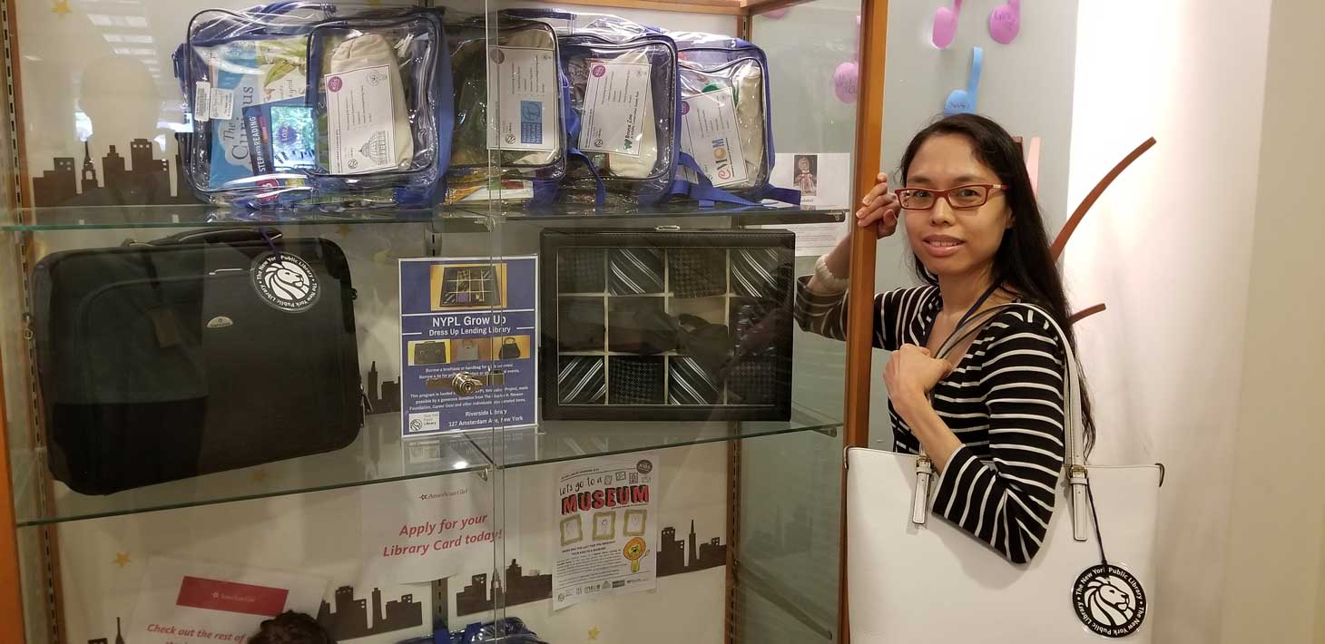 A librarian at the Riverside NYPL branch, Michelle Lee, spearheaded a program to loan ties, briefcases, and handbags after teaching seminars about job-hunting to NYC teenagers.