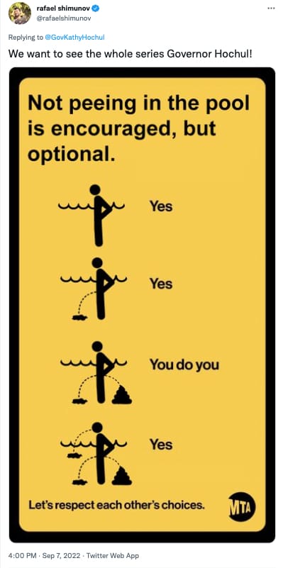 Not only has this new campaign compromised the concept of mutual aid on the most basic level, it has also ruined “Yes, yes, you do you, yes!” which is my signature catchphrase in bed. Luckily, since restrictions seem to be a thing of the past, I can go back to my true kink, which is licking subway poles. God bless America!
