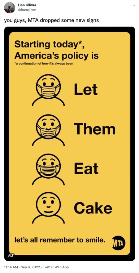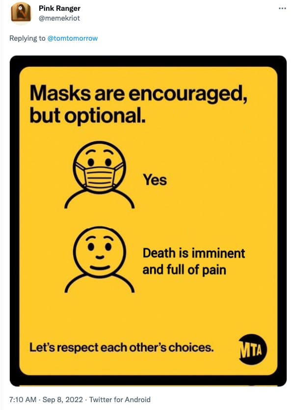 This truly puzzling new take on subway mask mandates particularly stings, as it is an evolution of the original campaign which encouraged people to, you know, stop spreading a highly infectious disease while in extremely close quarters.