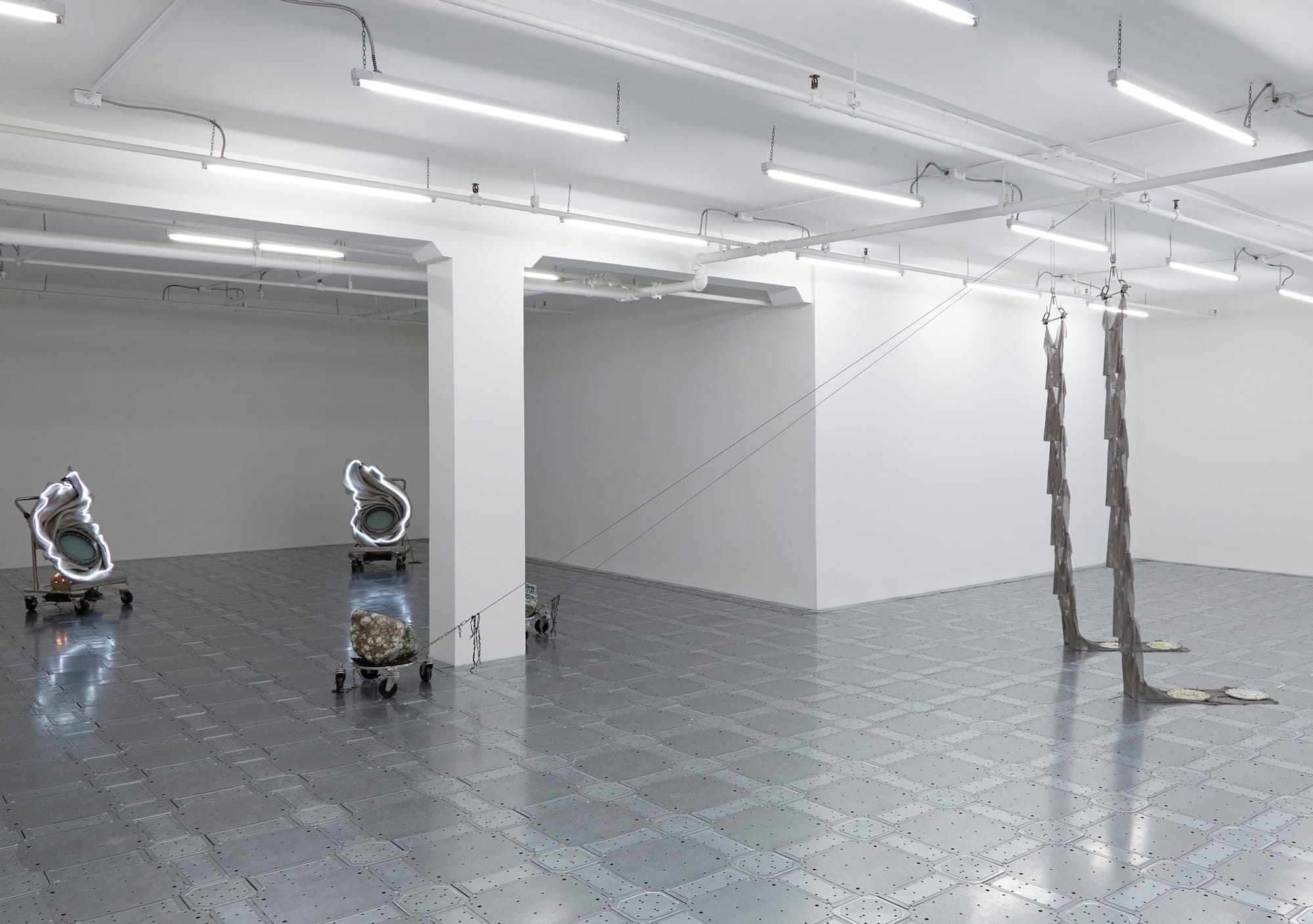 For her first solo show at JTT in 2019, strings that show the wind, sculptor Elaine Cameron-Weir rendered a mind-bending meditation on materiality, featuring elements such as leather sculpted to look like concrete, that transformed seemingly recognizable objects into artworks that were simultaneously futuristic and reminiscent of historical torture devices.