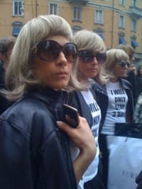 After Milan crammed its fashion week into several days to coincide with Anna Wintour’s visit, a group of protestors took to the Piazza Oberdan before Gucci’s show to demonstrate their discontent. Clad in bobbed wigs, sunglasses and t-shirts that said “I Will Only Stay 3 Days,” the ladies leered at press and buyers.