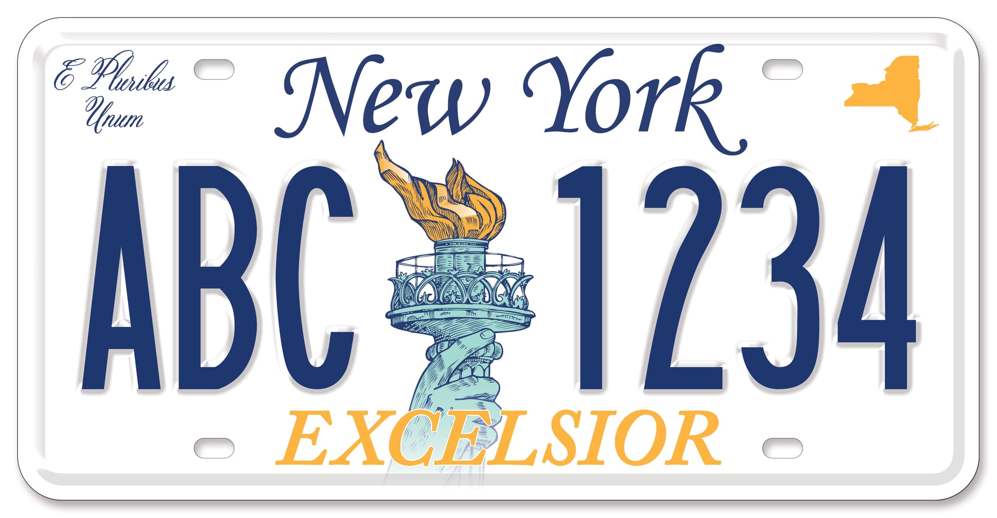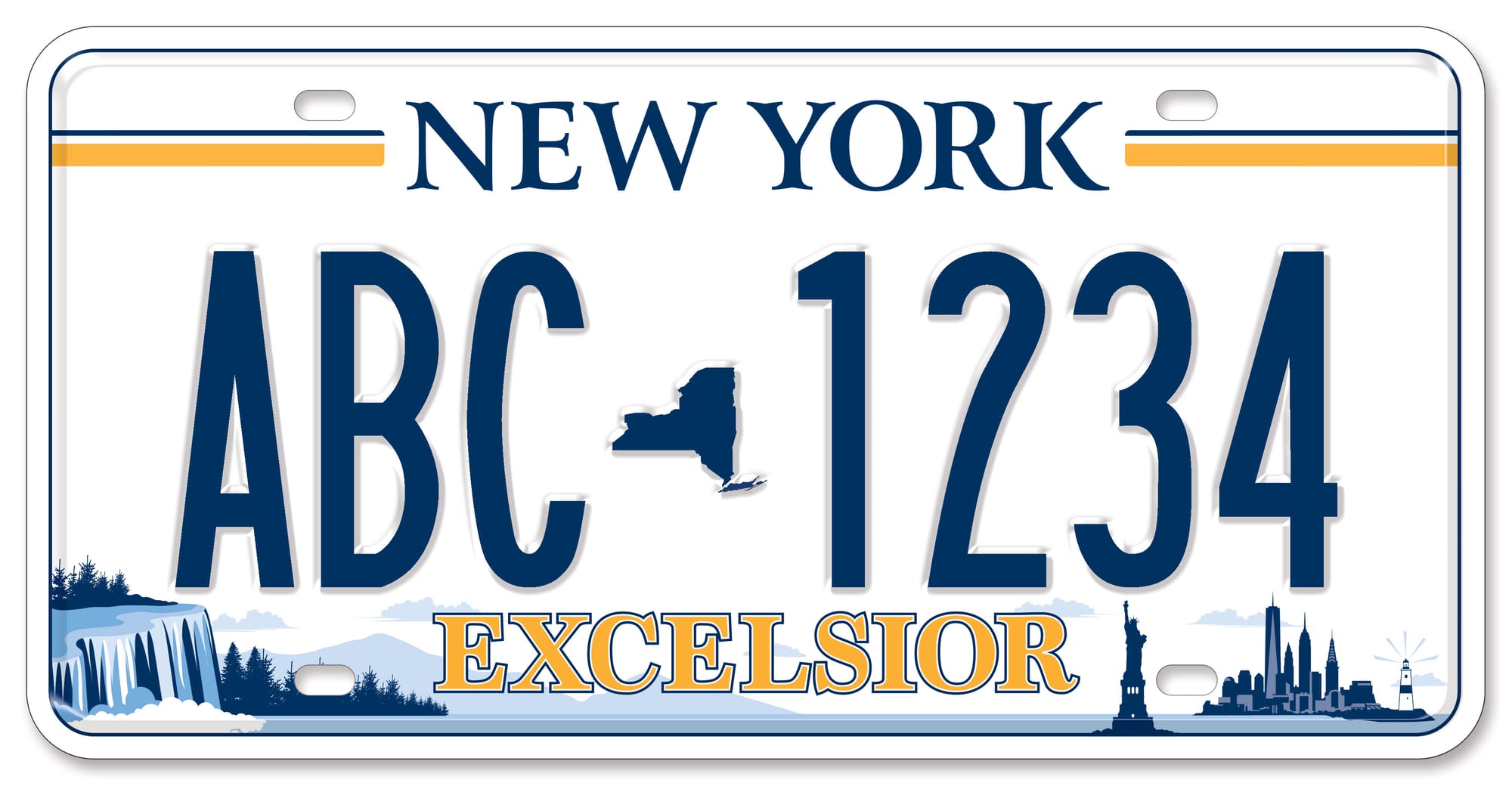The state will transition into the selected design in April 2020, transitioning out the more recent Empire Gold (a more bold, but also pretty unappealing iteration of the state colors — blue and yellow) plates.