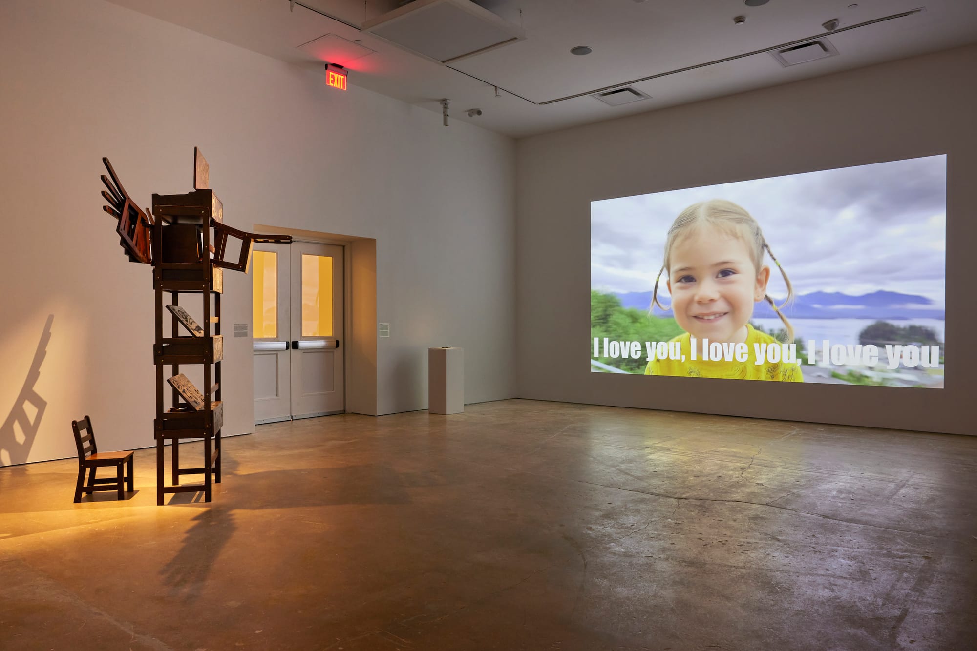 Galanin poignantly returns to the theme of care in the video “K'idéin yéi jeené / You’re Doing Such a Good Job.” The camera focuses on the face of Galanin’s son At Tugáni, while Tlingit words of love, care, and affirmation are spoken to him off camera by his parents. The luminous sweetness of the child’s features is offset by the knowledge that recent generations of Indigenous children, captive at government boarding schools, never heard these expressions of care from family because they were taken, and they were brutally punished if they were heard speaking their native languages. Galanin is clear that this isn’t just a work about shedding light on a historical trauma, but an offering of a path to recover from it.