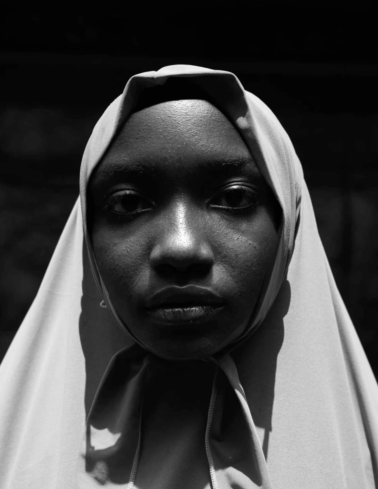 One piece, “Chibok Experience” (2021), commemorates the 276 girls kidnapped from the Government Girls Secondary School by Boko Haram in 2014. According to Nwadiogbu and co-creator Olayinka Sangotoye, “This body of work dives into the experience, thoughts, imagination, and memories of family members of the victims. The memories can only be replayed when a picture of the kidnapped is held by family members.”