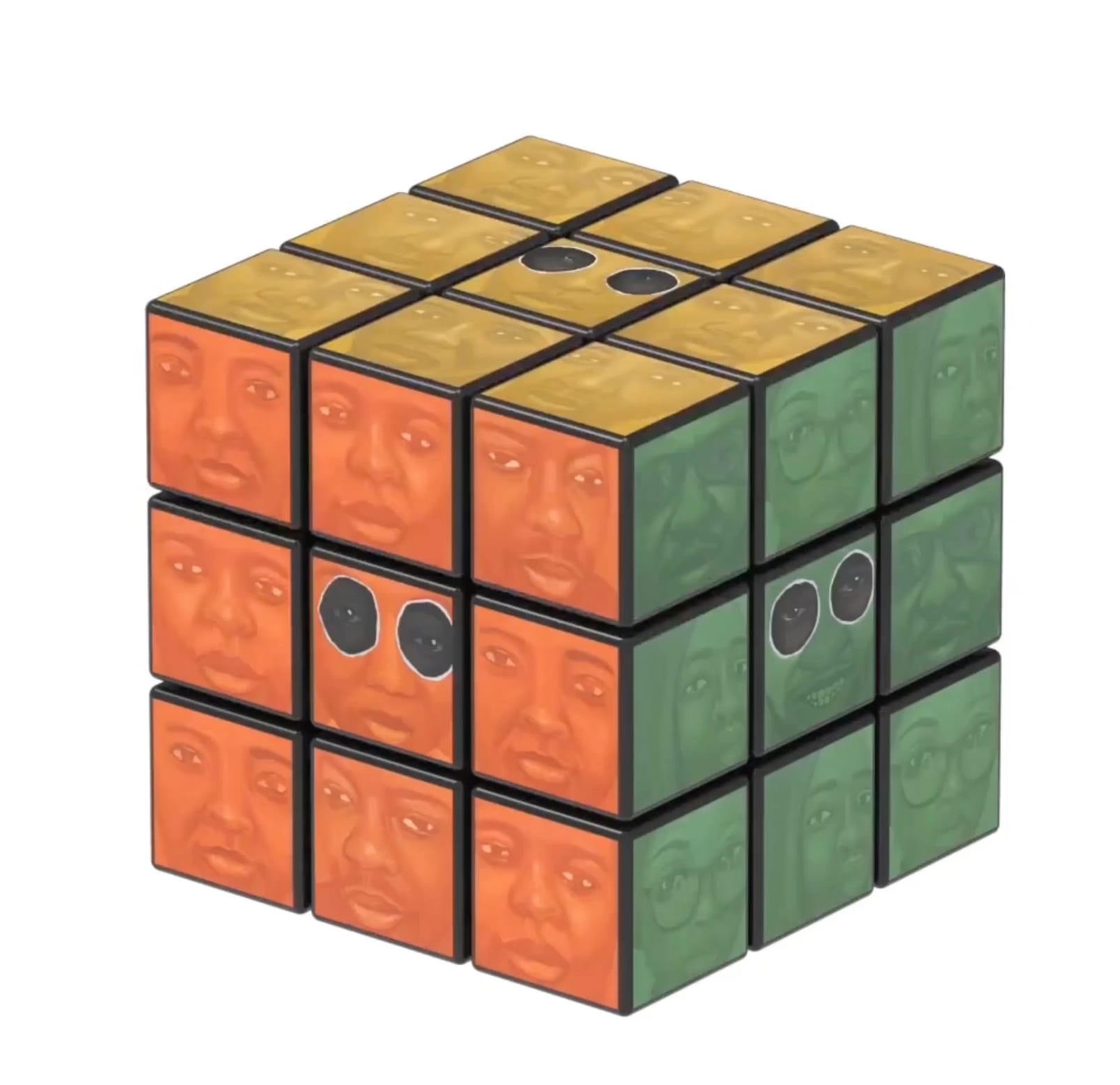 A collaboration between Nwadiogbu and Funfere Koroye, “Journey Mercies” (2021), digs into the migrant experience, playing on a visual of a Rubix Cube to demonstrate the myriad ways migrants enrich their destination nations. “As people of color, we journey around the world sharing our cultures, our identity, and our beliefs,” reads the artist statement.