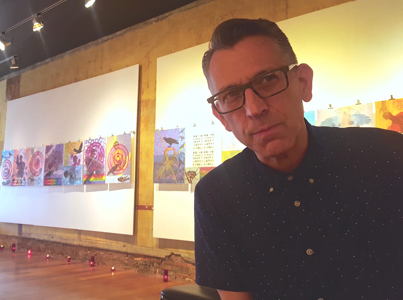 In a vibrant and beautiful tribute, John Gutoskey has made 49 unique monoprints, one for each victim.