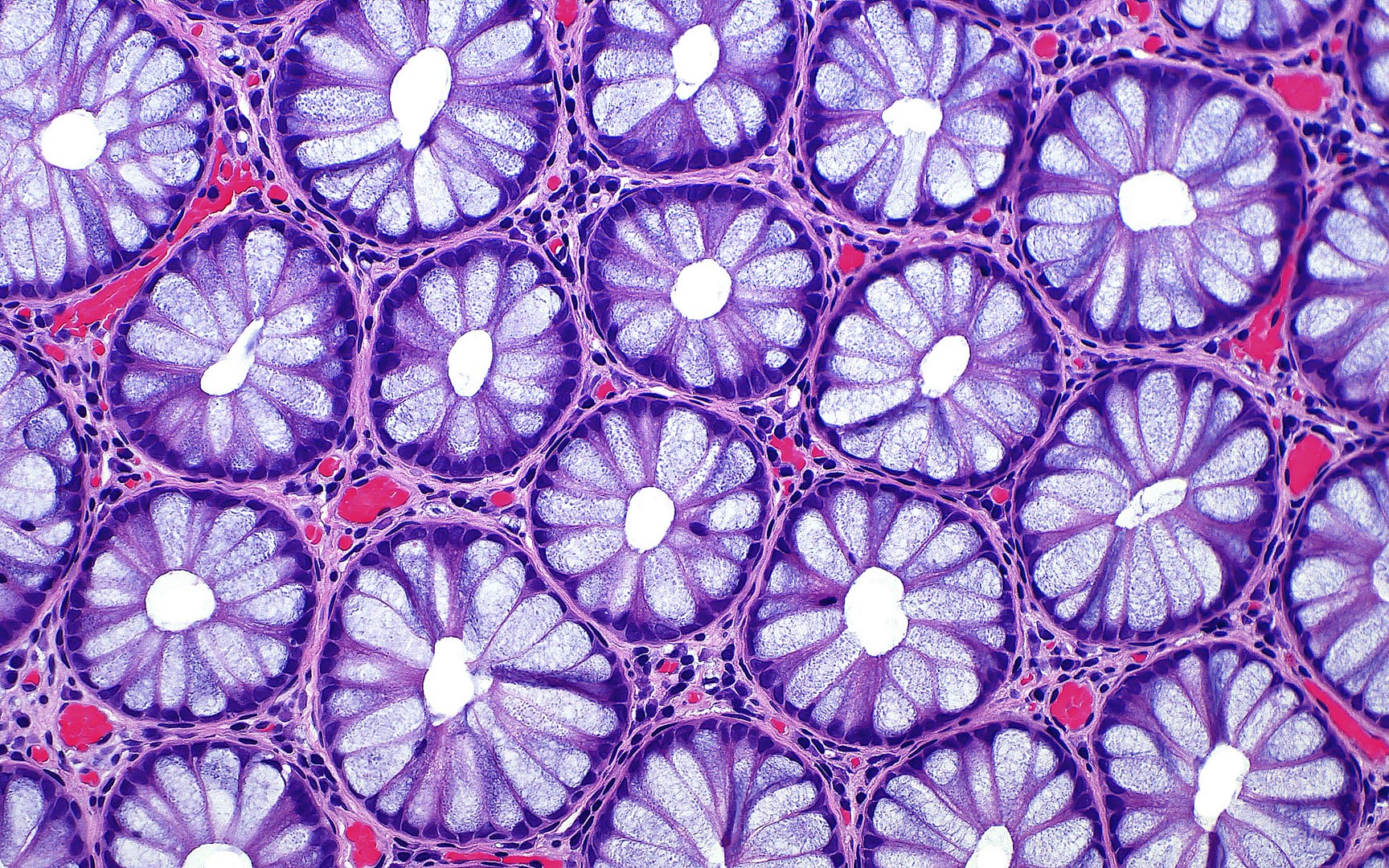If you're anything like me, you constantly wonder what the blood vessel networks look like in the intestine of an adult mouse. Wonder no more! Third place was awarded to Satu Paavonsalo and Sinem Karaman from the University of Helsinki, for their cool-hued, anemone-like micro-image of just such a subject.