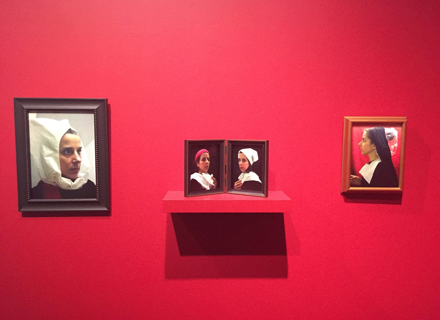 In 2011, a year after starting the series, Katchadourian retreated to an airplane lavatory to snap cellphone images of herself posing as if she were a figure in a Flemish portrait. She costumed herself with whatever materials were at hand: toilet seat covers, hand towels, her own scarf. Lavatory Self-Portraits in the Flemish Style, a sub-series of Seat Assignment, went viral on several occasions. Yet, as easily humorous as they are, the self-portraits are not just clever selfies. Rather, they’re a renegade performance — skillful improvisations, at high altitude — of 15th-century Flemish portraiture.