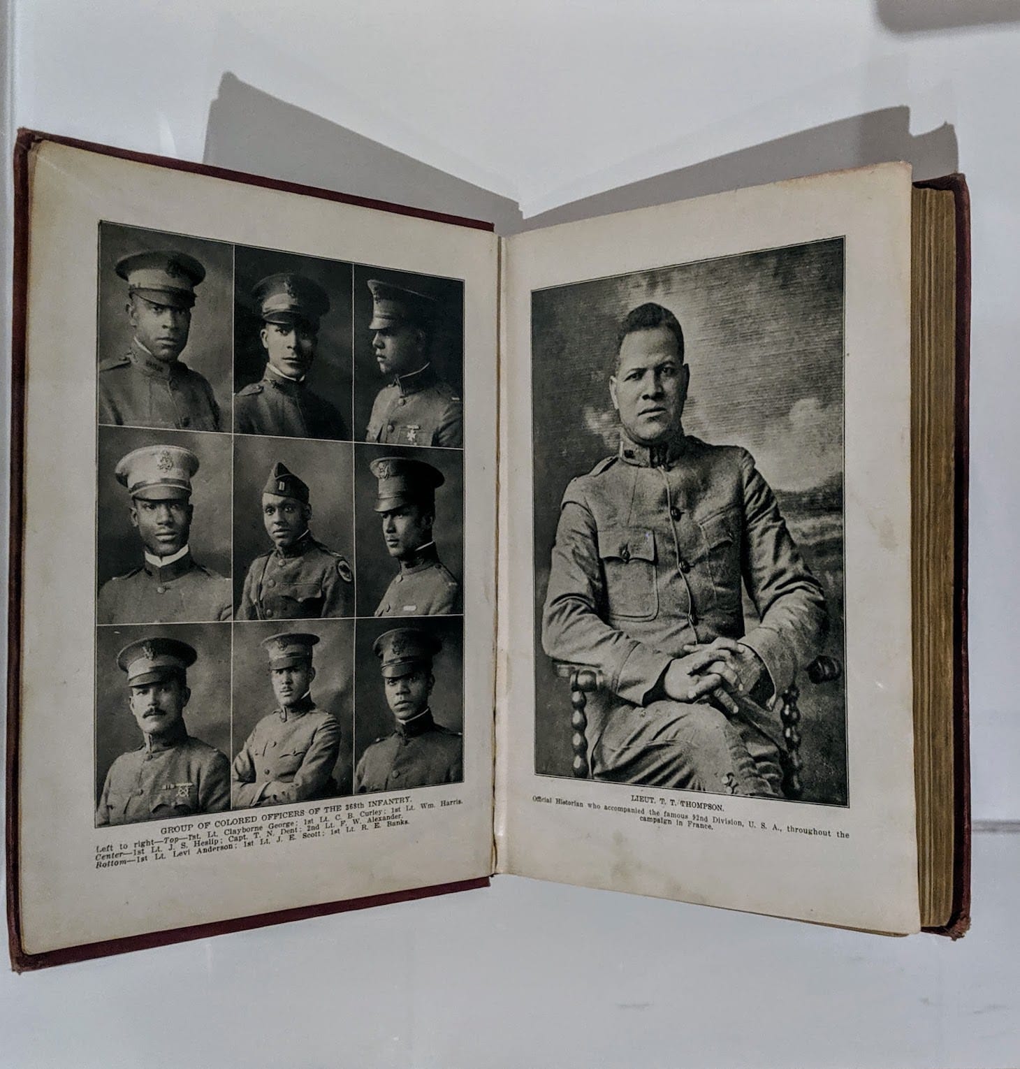 Placed to the right of the entrance, three books published in 1919 encourage returning African American soldiers to participate in the democracy they had just risked their lives to preserve. Nineteen Nineteen does more than just display these groundbreaking historical documents beneath glass vitrines, though. It amplifies their real-world implications by surrounding them with super-enlarged newspaper articles of the time. Many address the unwillingness and inability of white Americans to accept the right to equal representation, often with violent consequences.