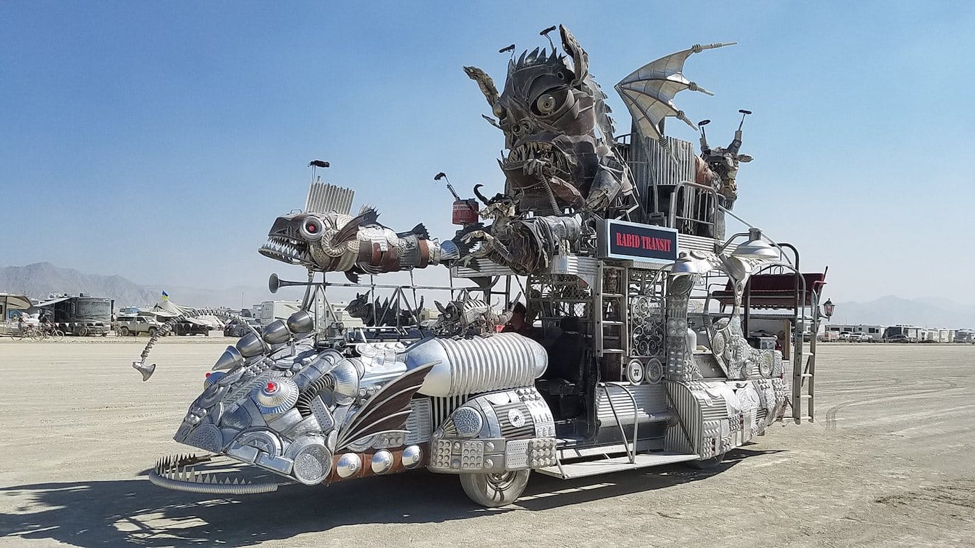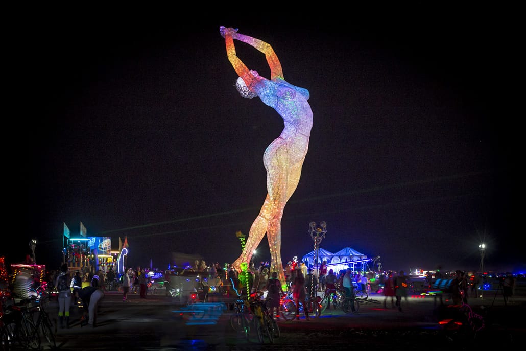 Burning Man began in 1986 when San Francisco artists Larry Harvey and Jerry James built a rough eight-foot-tall wooden figure from scrap lumber and dragged it to Baker Beach where they set it alight in a modern summer solstice ritual. The Burning Man became an annual tradition with a few hundred participants before it was banned by police in 1990 because of potential fire hazards, leading to its relocation to Black Rock Desert east of Reno in an otherworldly locale with no electricity, potable water, or other amenities, not to mention extreme conditions including blinding sandstorms, brutal heat waves, and freezing nights.