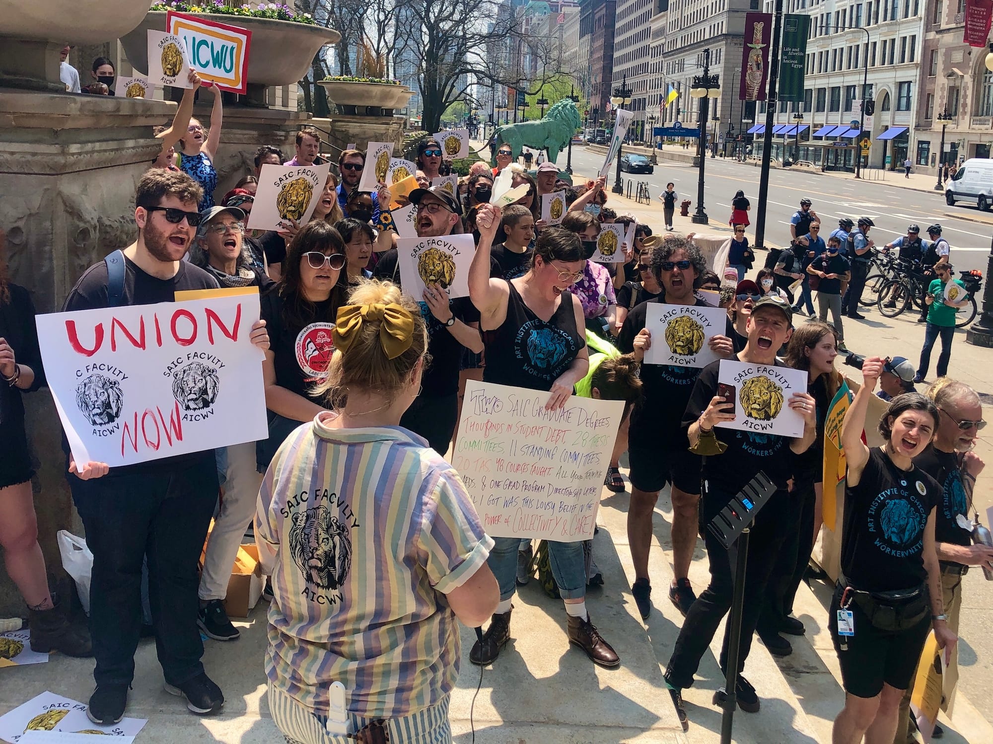 All other staff at SAIC and the Art Institute of Chicago, the museum associated with the school, unionized in January, forming Art Institute of Chicago Workers United (AICWU). Non-tenure-track faculty members now hope to join the union as well. (In the United States, most tenured and tenure-track faculty cannot unionize because a 1980 Supreme Court decision, National Labor Relations Board v. Yeshiva University, labeled them "managerial" workers.)