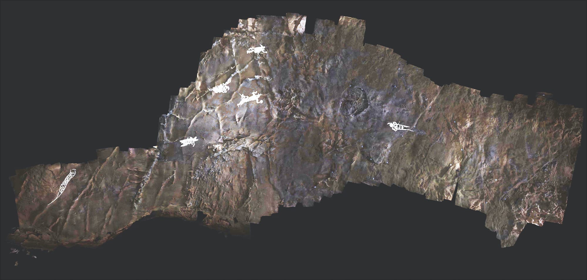 The first drawing was discovered deep inside of the cave, beyond the reach of sunlight. The cave is also so shallow that even when lying on the floor, the drawings cannot be seen in their entirety. To recreate the complete drawings, Simek, Alvarez, and Cressler used photogrammetry, which involves taking thousands of overlapping images of the drawings and then compiling them into a 3D rendering. These drawings are similar in scale to the expansive Horseshoe Canyon drawings in Utah, but unlike the artists who created those open-air works, the authors of the drawings in the Unnamed 19th Cave would not have been able to see the full drawing they were working on while they were creating it.