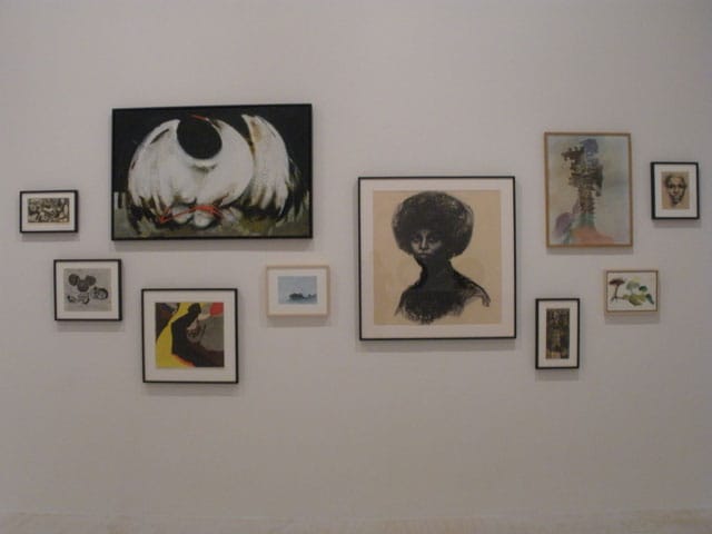 The next room picks up on this idea of local spaces and community, focusing on artists who opened up their own spaces and used the galleries as meeting places. “When people don’t show your work, you show it on your own,” Jones had said. Not only that, but you write your own history, which is what people like Samella Lewis and Ruth Waddy did. Lewis is an artist (a few strong lithographs on view in the first gallery) and art historian who founded the quarterly Black Art in 1976 and published, with Waddy, also an artist, the two-volume Black Artists on Art in 1969 and 1971.