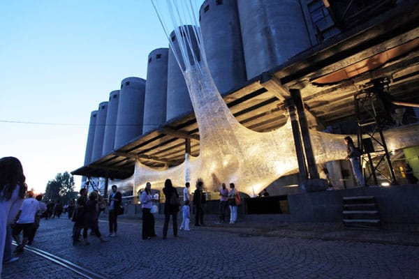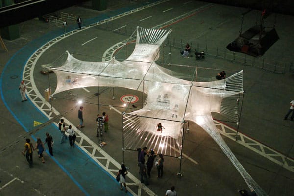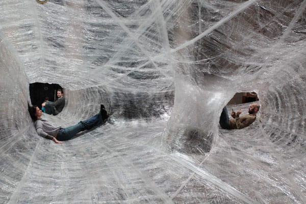 Today in your dose of “WOW” factor, Viennese/Croatian design collective Numen/For Use — which is comprised of Sven Jonke, Christoph Katzler and Nikola Radeljković — create impressive webs in outdoor and indoor spaces using tape.