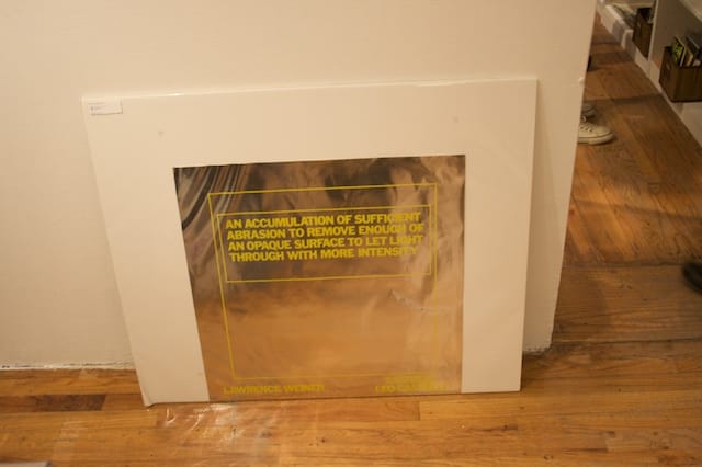 On the first floor, a spread of wonders splayed out in the form of glass vitrines filled with collectibles: artist monographs, old exhibition pamphlets, signed ephemera. Way more than I could possibly afford, but I spent some time poking around nonetheless. There was a cool Lawrence Weiner sparkly poster and some neat Max Ernst illustrated leafs from the original print run of a book. Fortunately, things got more interesting and accessible upstairs.