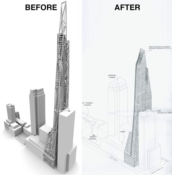 In a classic press move, the New York Observer has gotten their hands on the proposed new stockier design for Jean Nouvel’s MoMA tower through a public information request.