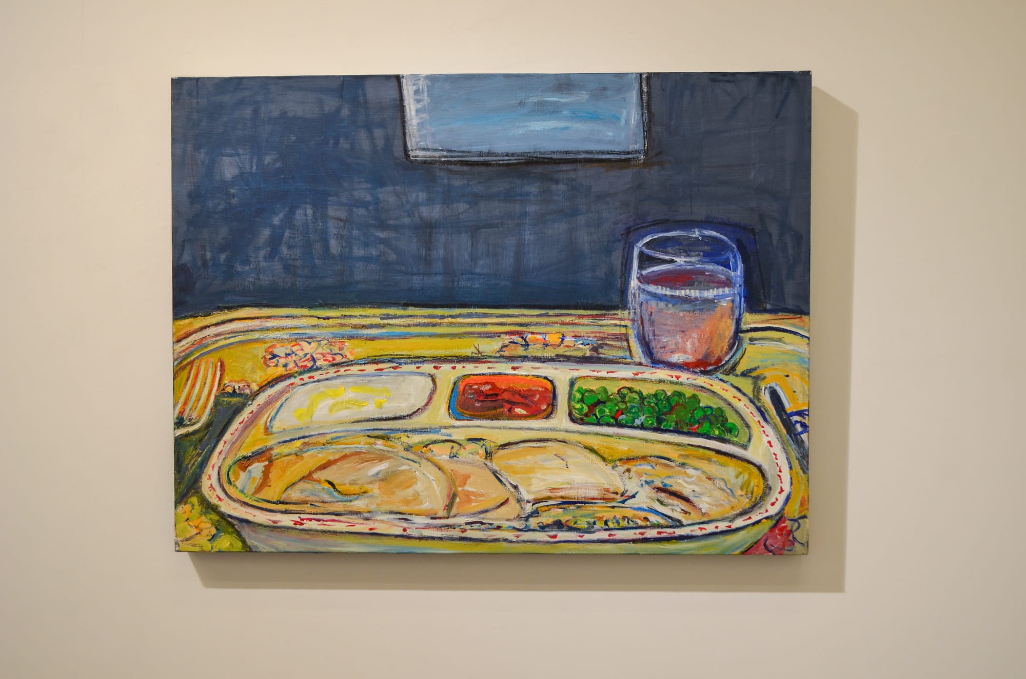 While Beens was the only artist in the room, I also took note of Marykate O’Neil’s painting “Turkey Dinner” (2022), featuring a massive single-serving TV dinner and speaking to her aesthetic of solitude in the digital age.