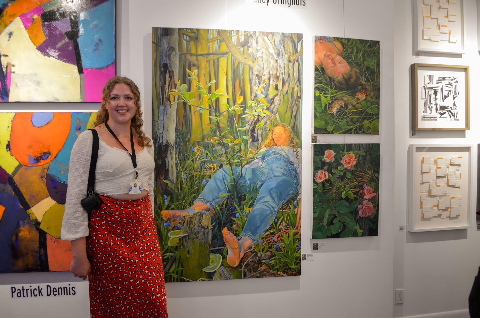 After two performances, I finally had a chance to look at the visual art. I spoke to Ashley Gringhuis, a Canadian artist who recently quit her job in landscaping to pursue art full-time. She said she’d only just started showing her artwork in January. Her self-portraits ring true to her previous career, and I appreciated the throughline.