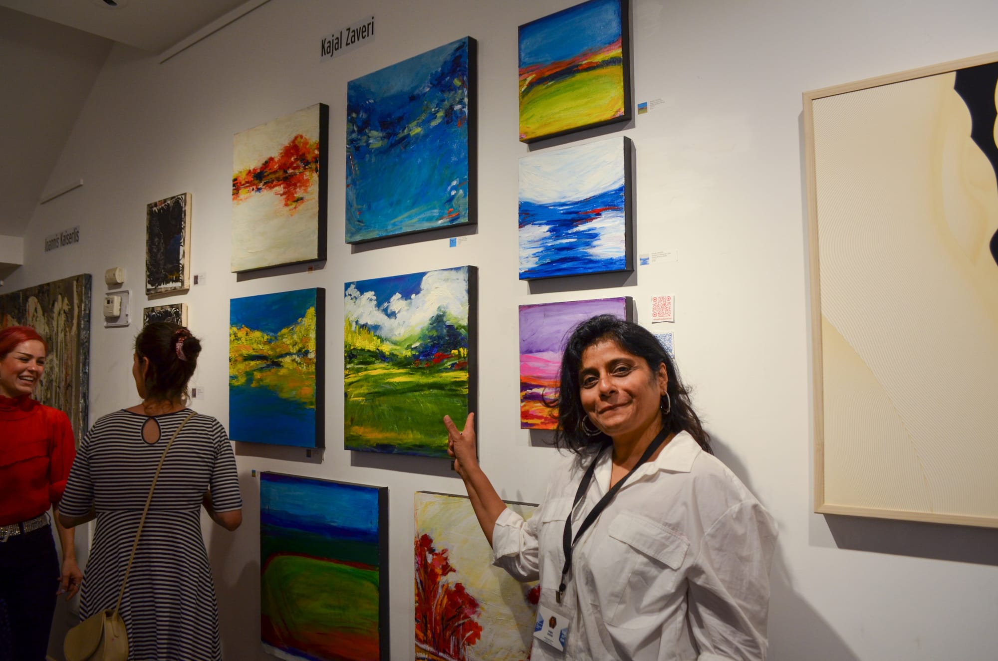 Close by, I started talking to artist Kajal Zaveri. Immediately, we lied to each other about being from San Francisco — we are both from the suburbs of San Francisco — and I recognized what drew me to the paintings in the first place: their resemblance to Bay Area horizons.
