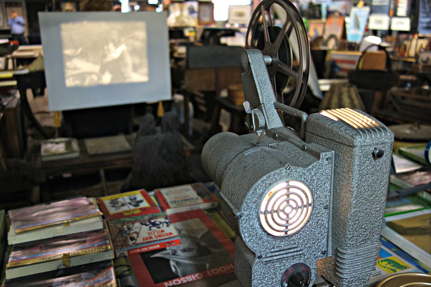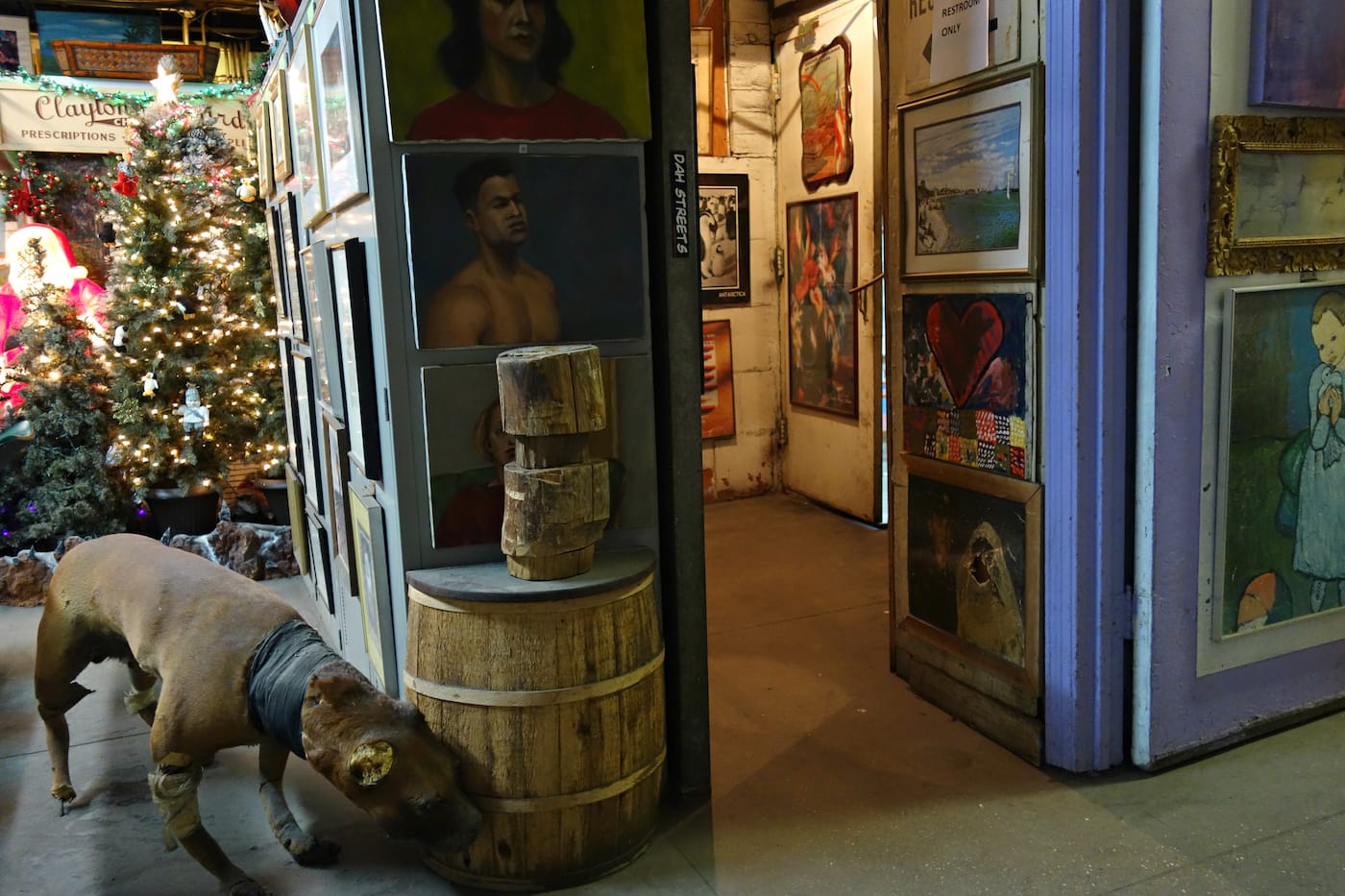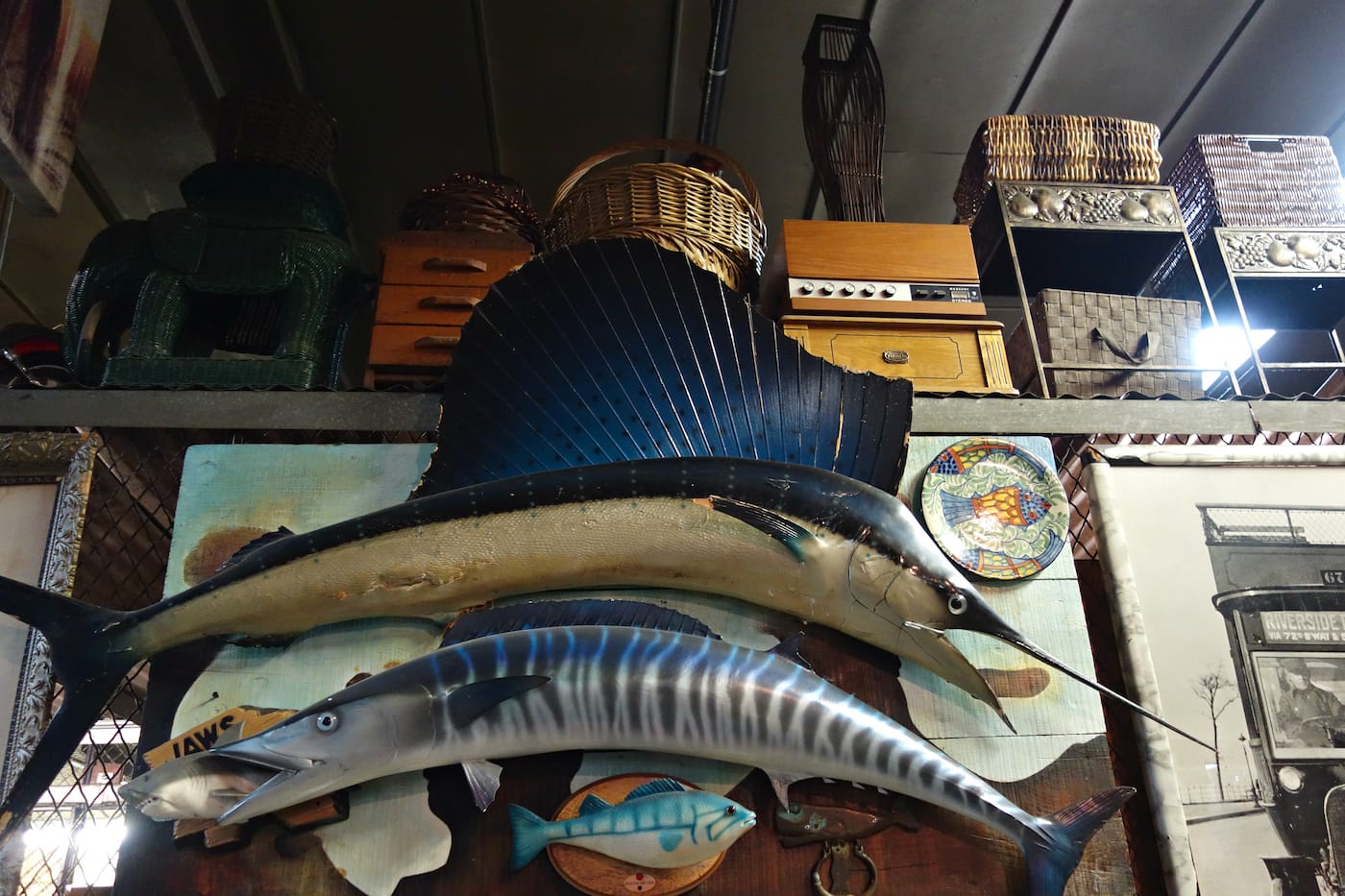 A few items were discovered by fellow sanitation workers, although Molina maintains final say on whether something will be installed. Now retired, he still comes in three days a week to the museum. “I’m always rearranging things here,” he said. And it’s that curating, juxtaposing, and sorting through decades of detritus that makes the museum more than just an Ali Baba’s cave of consumerism. Humorous touches include a huge mounted fish eating a plastic shark, a display of real war heirlooms presided over by a toy tank, a garland draped over the neck of a tiny horse, as if it had won a race, and a stuffed fox hiding among the plastic Christmas trees. A silent film projector is set up on one table, while signed baseballs, a jumble of stopped clocks, lines of doorknobs, and an array of glassware ordered by color rest nearby. Some pieces are heartbreakingly personal, like a clock engraved with the words, “Steve, wishing you great success. Love, Kevin and Amy.” Absolutely every possible space is used, starting with a fake rat in a cage on the staircase leading up to the museum. A compact office is even nestled in an alcove above the exit sign, complete with lamp and radio.
