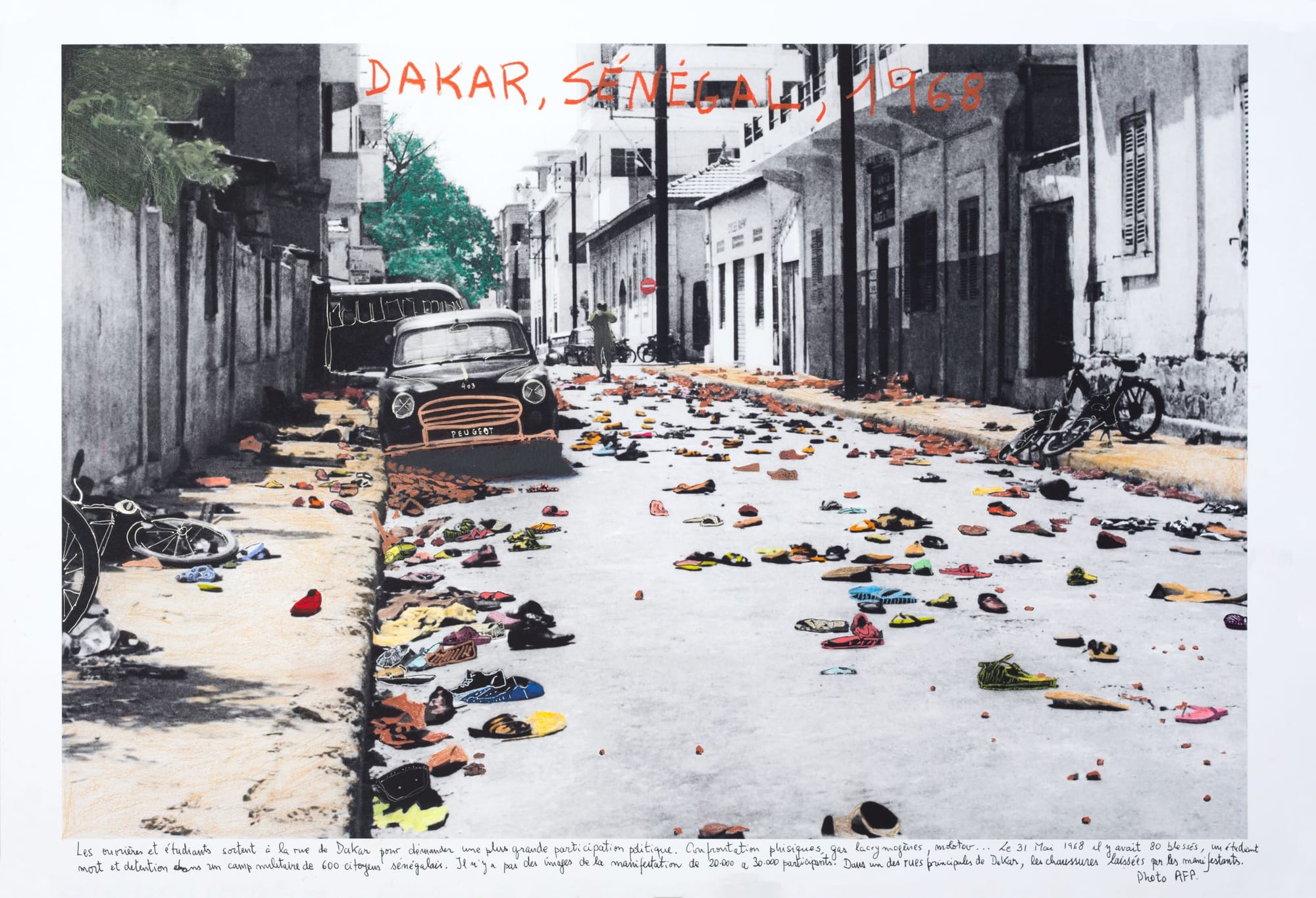 Other gems are sprinkled throughout the fair, including Cooper & Gorfer’s “Anonymous Landscape” (2020) and Saïdou Dicko’s hand-painted archival pigment prints at the booth of Jackson Fine Arts in Atlanta. Jessica Wynne’s “Philippe Michel, Swiss Institute of Technology” (2019) is another standout. It's a strikingly realistic and confusingly mesmerizing photograph of a messy chalkboard. The work of Argentinian artist Marcelo Brodsky, who took up photography in exile in the 1980s, is on view at the booth of Henrique Faria.