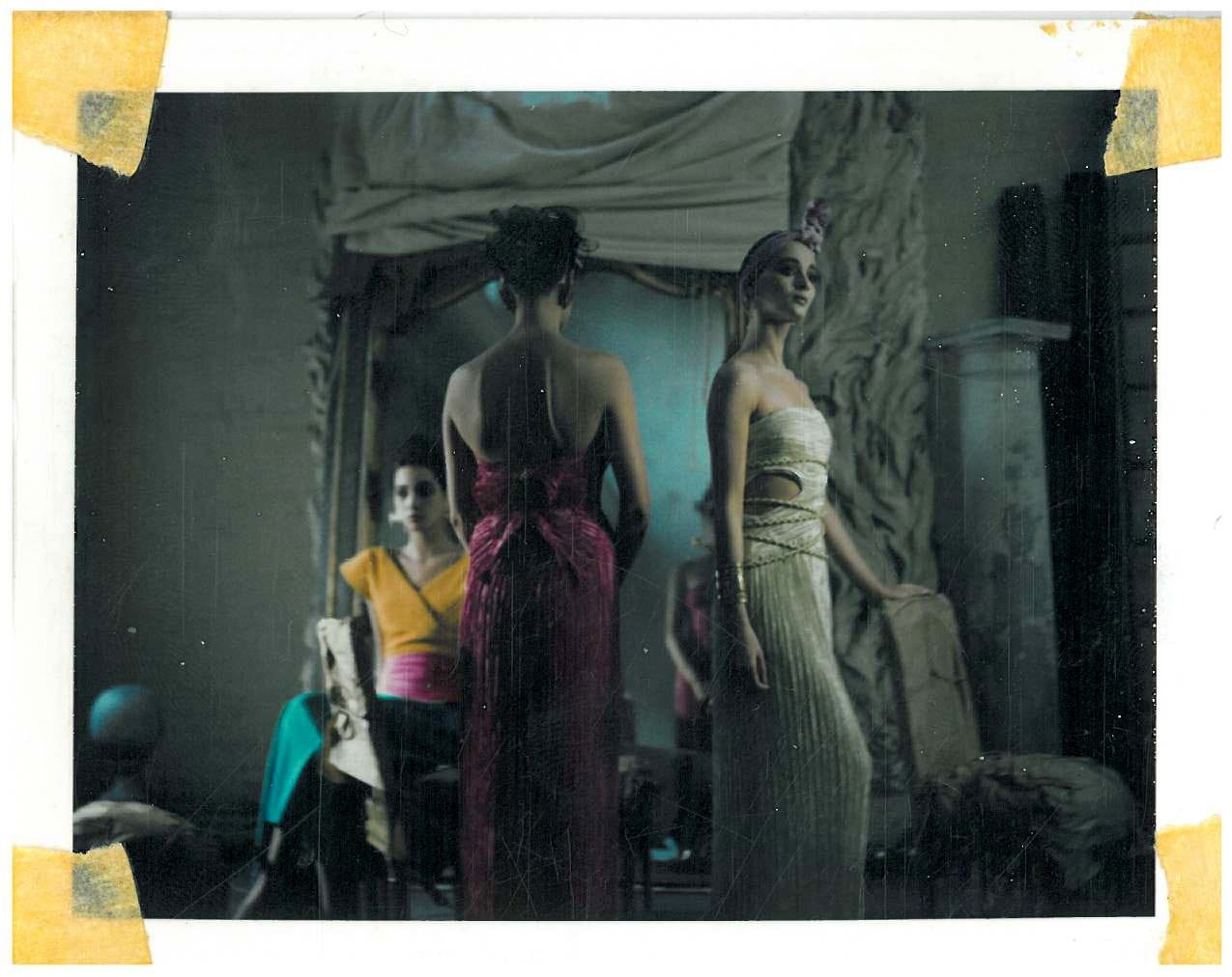 At the back of the fair, the research-focused MUUS Collection, which comprises more than half a million 20th-century photographs, presented a large exhibition of Polaroids by Deborah Turbeville, an artist credited with helping steer fashion photography from overtly commercial ad imagery toward fine art. Turbeville captured these images in preparation for final shoots, and nearly all of the works are marked with the tape she affixed to them decades ago. Women in couture lounge on sofas in decrepit, high-ceilinged rooms. The introductory text on the wall, penned by the Morgan Library’s Curator of Photography Joel Smith, notes the photographer’s commitment to “story-like situations” in “more or less gothic locales.” Some of the scenes are borrowed from cinema.