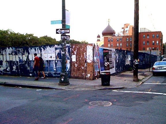 A few days ago Brooklyn artist Julie Torres contacted Hyperallergic to let us know about a serious legal issue she was facing as a result of painting outdoors. She explained that on July 17, she was enjoying a summer afternoon in Williamsburg as she worked on a large watercolor painting that was taped to a construction wall at the corner of North 11th Street and Bedford Avenue, near Hyperallergic HQ.