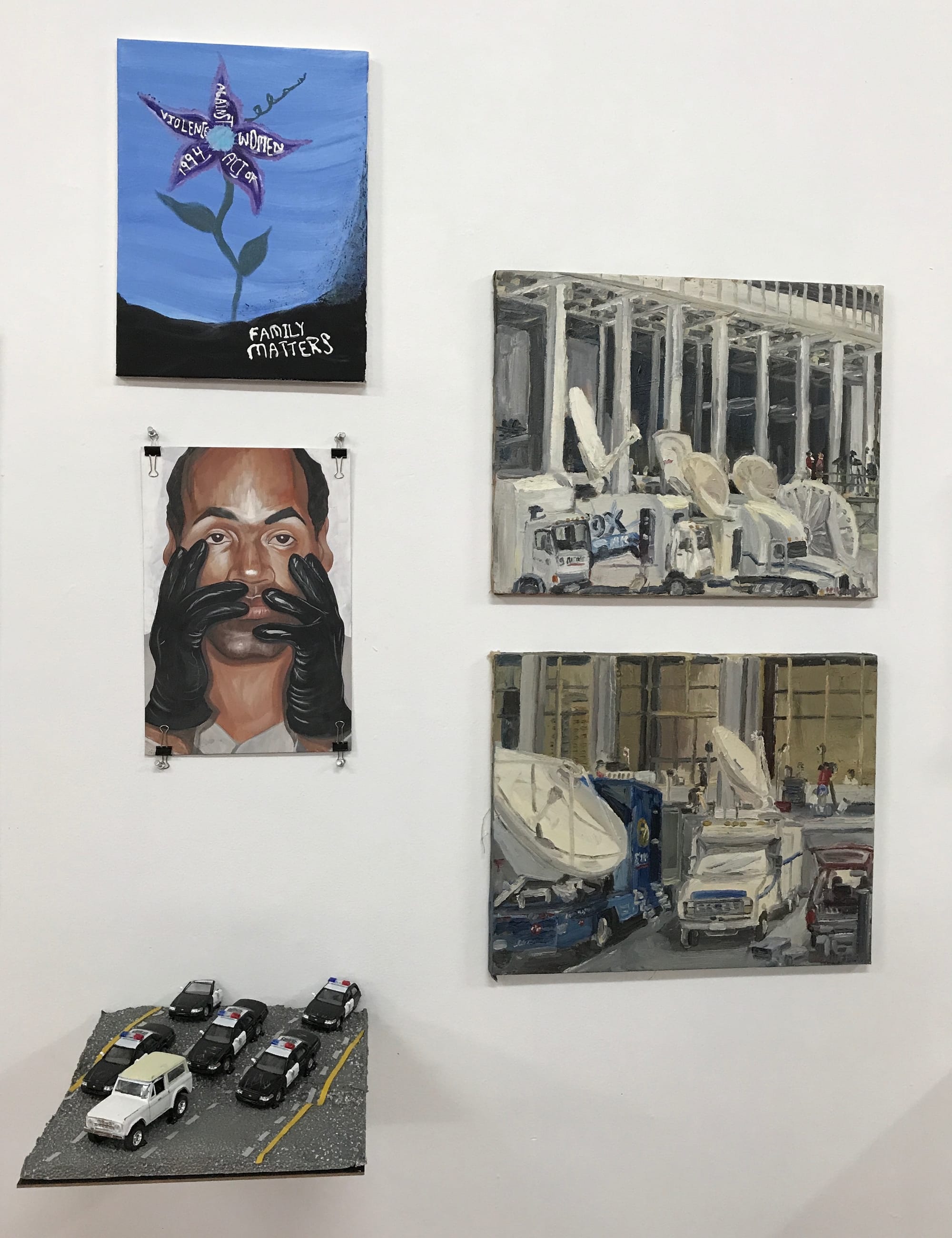 Those who grew up in moneyed Brentwood, like Papagan, could certainly feel that proximity, even if they weren’t implicated in the trial’s political and racial dimensions. Unlike the Rodney King beating or the 1992 uprising, the O.J. trial brought Los Angeles’s boiling racial tensions to the doorsteps of white liberals who were comfortably ensconced in their enclave. “I never get tired of [the O.J. trial],” Papagan told the New York Times last year. “I think it signified the transition into the digital age. It was the last time our entire culture was all watching the same thing.” This is true to a degree, and the amount of ’90s references in the museum’s artworks suggests that the trial has become a touchstone for millennial nostalgia. But the ways that different members of our culture perceived and interpreted what they were watching in 1995 may have been worlds apart.