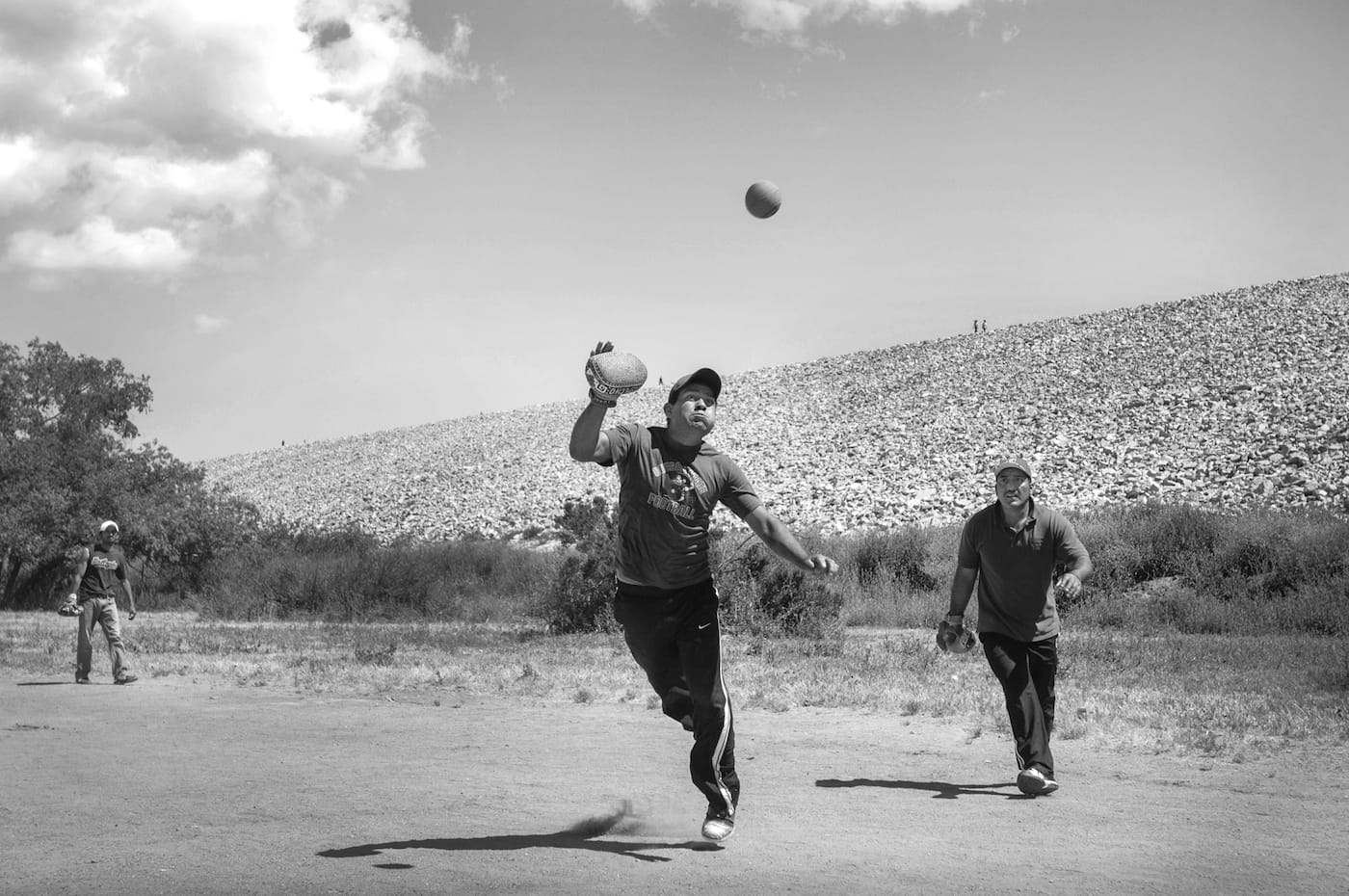 One lesser-known tradition — at least to outsiders — that has flowed north, is pelota mixteca or Mixtec-style ball. Played on a long, narrow court with two teams of five players, it loosely resembles a net-less game of tennis. Instead of rackets, however, each player wears a padded, decoratively studded glove, with which they hit a large rubber ball towards the opposing team. Currently on view at the Fowler Museum, the exhibition Pelotas Oaxaqueñas / Oaxacan Ball Games features photographs by Leopoldo Peña, who has documented this phenomenon in Oaxacan expat communities across Southern and Central California.
