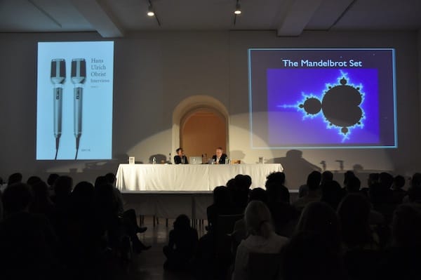 The final act of this unusual book reading was Obrist’s interview with Bulgarian-American astronomer Dimitar D. Sasselov, who discussed things we usually don’t explore in the art world — it’s the first time I had ever heard anyone discuss the Mandelbrot Set. The interview was the most fascinating part of the Obrist event and revealed a level of intellectual curiosity on Obrist’s part that was a welcome change.