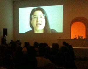 The afternoon festivities began with a long introduction by PS1 curator Klaus Biesenbach, who tried to impress us with how far back the two art world titans go (from what I could remember it had to do with a train ride in Switzerland and some opposite-sex marriage), and continued with a YouTube-like confessional video by Marina Abramović, who was planning to attend but couldn’t due to a death in her inner circle (more inner circle than Obrist, I assume). In the video, Abramović rattled off words associated with Obrist, including “over-medicated,” which I appreciated since it explained why the curator wunderkind spoke so fast. Acccompanied by his thick European accent, Obrist’s verbal velocity forced me to concentrate on every word he said.