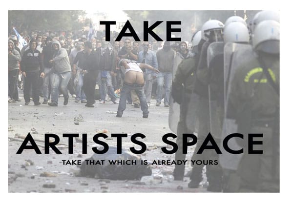First the race of anonymous Twitter handles, then it was tilting at windmills museums, now some artists temporarily occupied Artist’s Space (and, of course, there was an accompanying tumblelog).