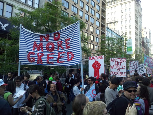 As the various labor unions arrived to march on the street, the police barricades set up to corral the rest of the mass within the park became permeable somehow, and soon all walks of life — in the tens of thousands — occupied Broadway. No rioting was to be had, mostly peaceful strolling with sporadic bursts of chants, but the march was a resounding victory given May Day’s objective: to resurrect what began last fall. Occupy Wall Street might have seemed to be in hibernation post-Zucotti Park, but it is clear that Occupy is a different beast than what it was before, with a multifarious face that defies the diminutive recognition of bygone headlines.