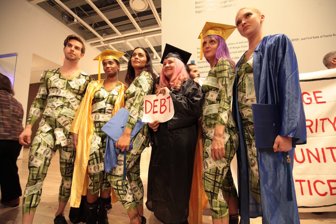 But, Fischer says, that’s not necessarily the collective’s objective, not immediately, at least. “Our goal at this point is to bring together a community of artist-debtors who are willing to break the silence around how a debt-based system negatively impacts the lives of less privileged people in the arts. Occupy Museum’s Debtfair project in the biennial basically presents this US-wide community of artist-debtors as a challenge to the current privilege-based system of visibility that benefits the ultra rich.” Fischer sees the counter-commencement as “a step in the direction” of talking about these issues. The question now, of course, is “What’s next?”