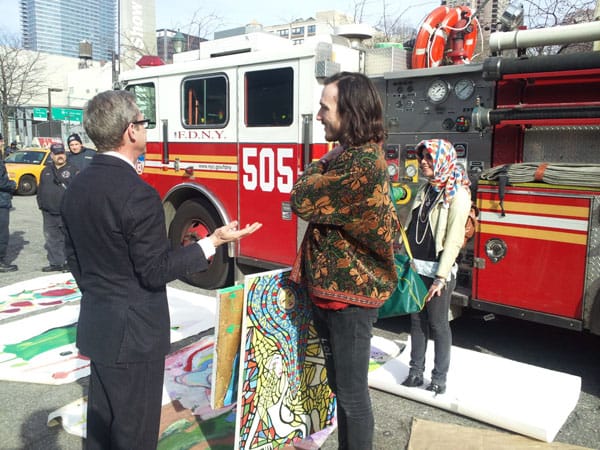 Highlights of the event included a Merrill Lynch banking adviser who couldn’t help sympathizing and sharing his artistic prowess. Best of all, the head of the Armory Show came out to acknowledge the disturbance to his show and said, “you can ride my coattails all you want” when asking some artists to move their work away from a firetruck. A poignant remark given the protester’s grievance that artists and their work had become secondary to the profiteers.