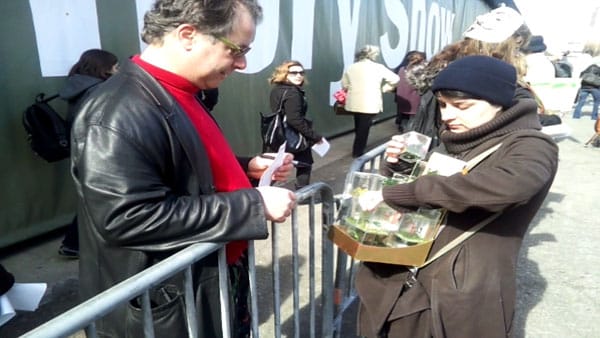 Last weekend during the New York art fairs, the OWS-affiliated Occupy Museums group reminded attendees of the 2012 Armory Show that having a big bank account wasn’t the only way to enjoy or obtain the artwork of others. The occupiers set up a free art exchange outside the entrance to the Armory, offering an eclectic variety of works available free of charge to anyone willing to creatively reciprocate.