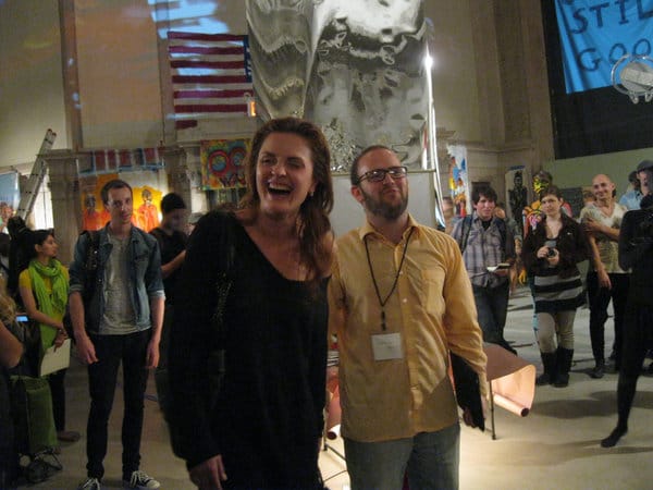 Loft in the Red Zone curator Marika Maiorova and a member of Occupy Wall Street’s media team addressed the crowd using the human mic technique that protesters have been using to amplify their voices in Zuccotti Park.