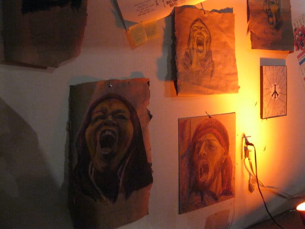 Art O’Connor’s rage was not unique and the emotion of rage was reflected in several pieces, especially in this series of drawings by artist Kathleen McDermott titled ArabSpring/IndianSummer/NY. It’s unclear if these are actual members from Arab Spring or Occupy Wall Street or imagined faces, or if the figures are expressing anger or pain. Either way the drawings were some of the heavier works in the exhibition.