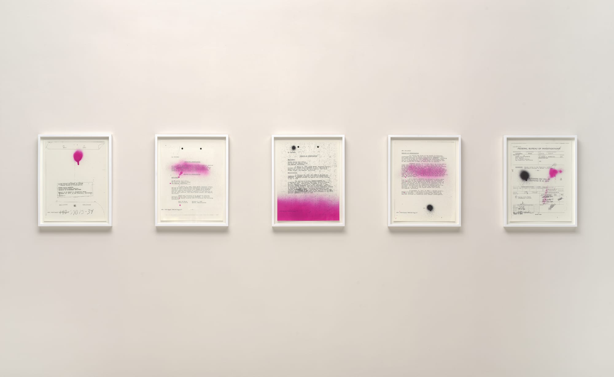 From the jump, Off the Record refuses claims of neutrality. Foregrounding the tradition of artists speaking truth to institutional power, the Guggenheim exhibition confronts the so-called “objective” nature of cultural and governmental systems by unearthing their deeply biased natures. Works by contemporary artists from the museum’s collection form an assemblage of radical, visual strategies, remixing and blurring photographs, newspapers, FBI files, children’s coloring books, and other media.