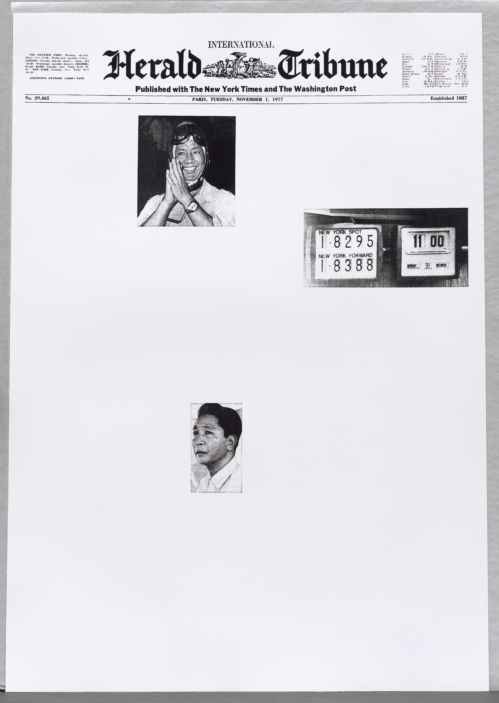“Undermining Objectivity” opens with Sarah Charlesworth’s “Herald Tribune: November 1977” (1977, printed 2008), in which the artist white-outs the newspaper’s text en masse, ultimately spotlighting its photographic focus on white masculinity, war, and devastation. (Charlesworth emerged among the Pictures Generation of the 1970s, as part of a cluster of artists who investigated and exposed the implications of mass media strategies.)