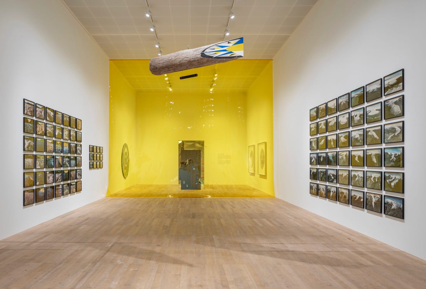 On the other hand, Eliasson’s work also treads a similarly fine line between what might be called populism and intellectualism: appealing alternately to teenagers taking selfies and academics writing papers (not that these are necessarily mutually exclusive categories). For instance, Timothy Morton, one of the great philosophical writers of our age, points to the “obvious visual gag” of Eliasson’s “Ice Watch” (2014), which was restaged in London last year in anticipation of this exhibition. It features melting chunks of glacial ice sourced from the Greenland ice sheet, which have been presented in a clock formation in various prominent, public locations over the last few years. Morton claims that the work is in fact “much more interesting” than this first layer of access might suggest. He uses “Ice Watch” as a key example of how art can help us to understand our relationship with nonhumans in an age of ecological crisis, arguing that the artwork “seriously stretched or went beyond prefabricated concepts, in a friendly and simple, yet deep way.”