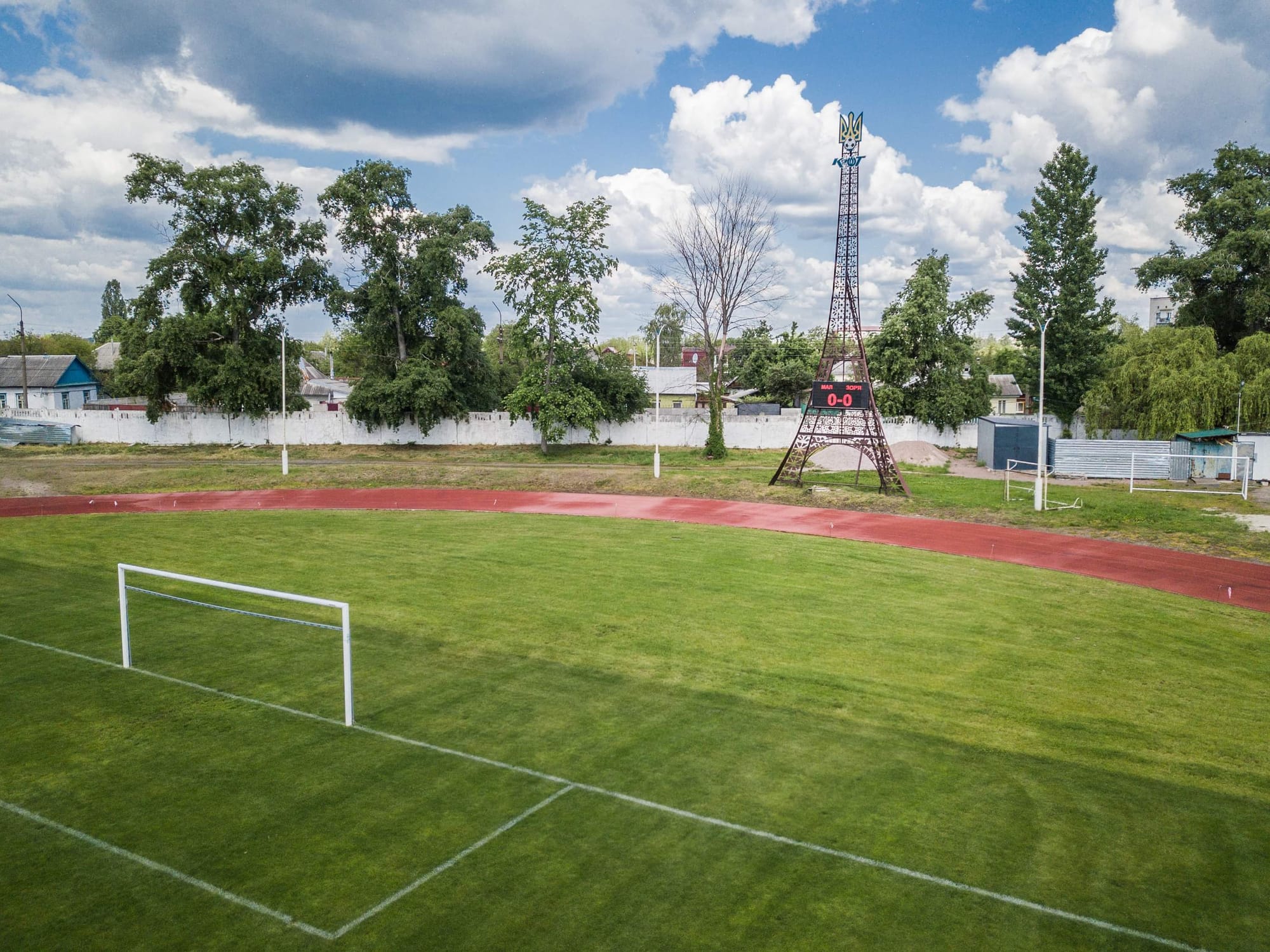 As a true vernacular phenomenon, Ukrainian versions of the Eiffel Tower exhibit local adaptations, reflecting on the history and culture of their communities, sometimes in a more stereotypical form. In Popenko’s collection, several are crafted in the motif of vyshyvankas, Ukrainian traditional embroidery patterns; another pays homage to the Chernobyl disaster's brave liquidators. A few have even acquired functionality, like the tower featuring an electronic scoreboard installed at the local football stadium in Korosten.