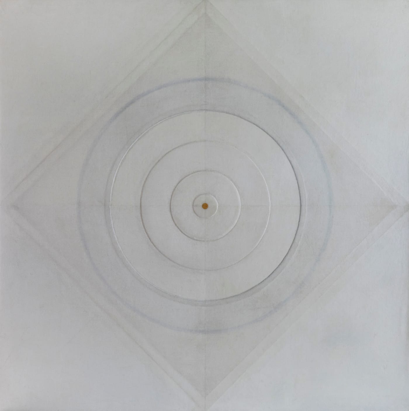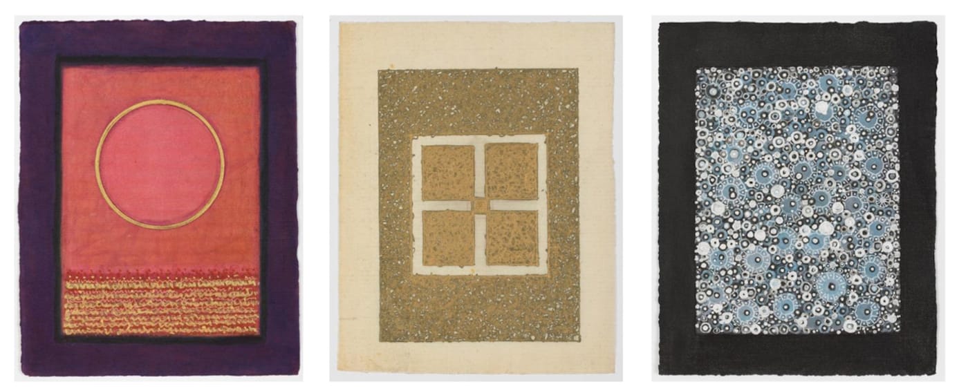 Such abstract images — a small triangle and a circle plunked down in empty pictorial space like lonely islands in a vast sea, or a block of bold, Daniel Burin-like stripes — serve as visual prompts for a seeker’s deep, concentrated, spiritual contemplation. Similarly, the character of Munroe’s art also brings to mind that of the pioneer in abstraction Hilma af Klint (1862-1944), a Swedish mystic whose paintings predated the non-realist, image-making experiments of such legendary early modernists as Wassily Kandinksy or Piet Mondrian.