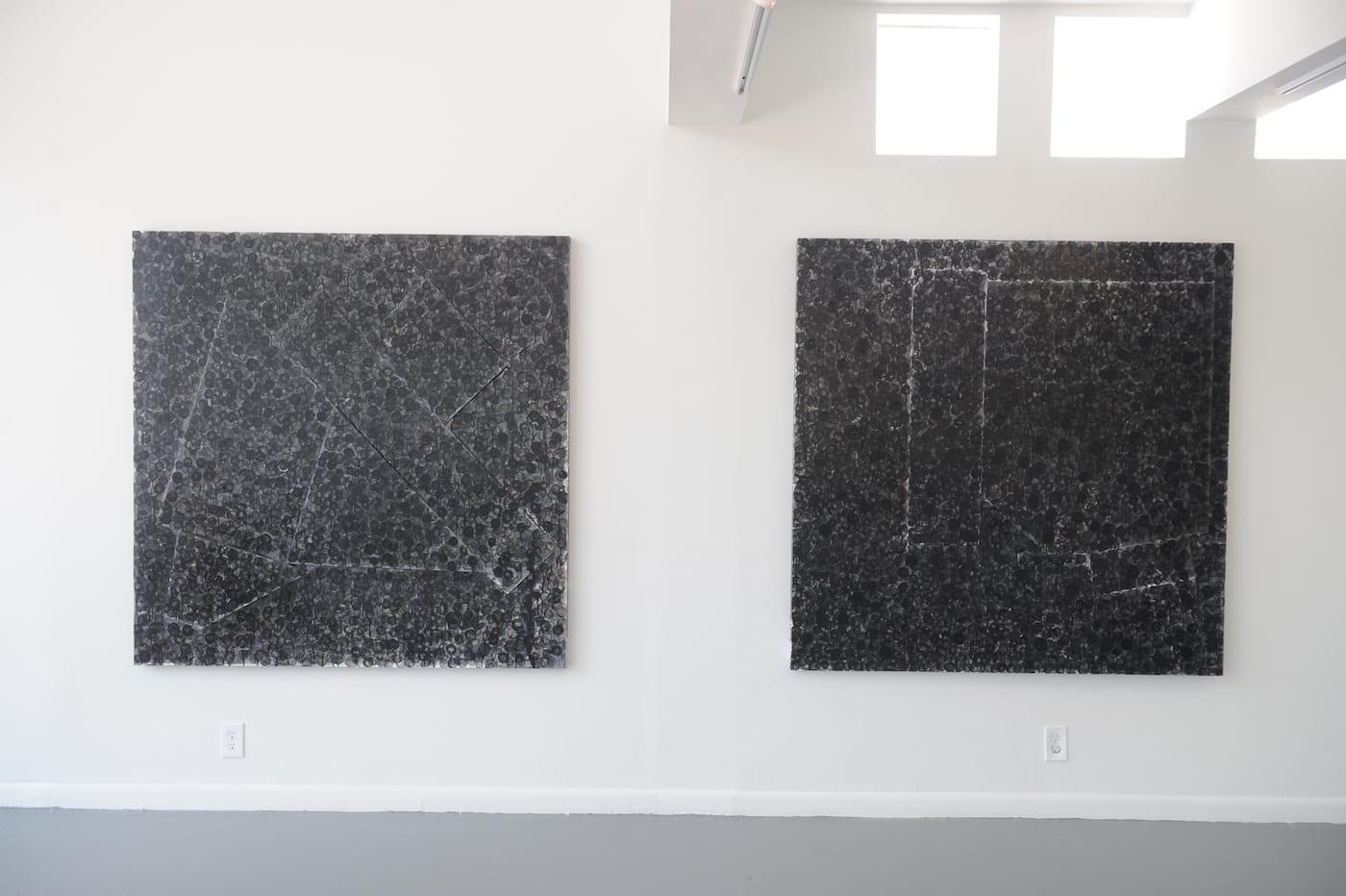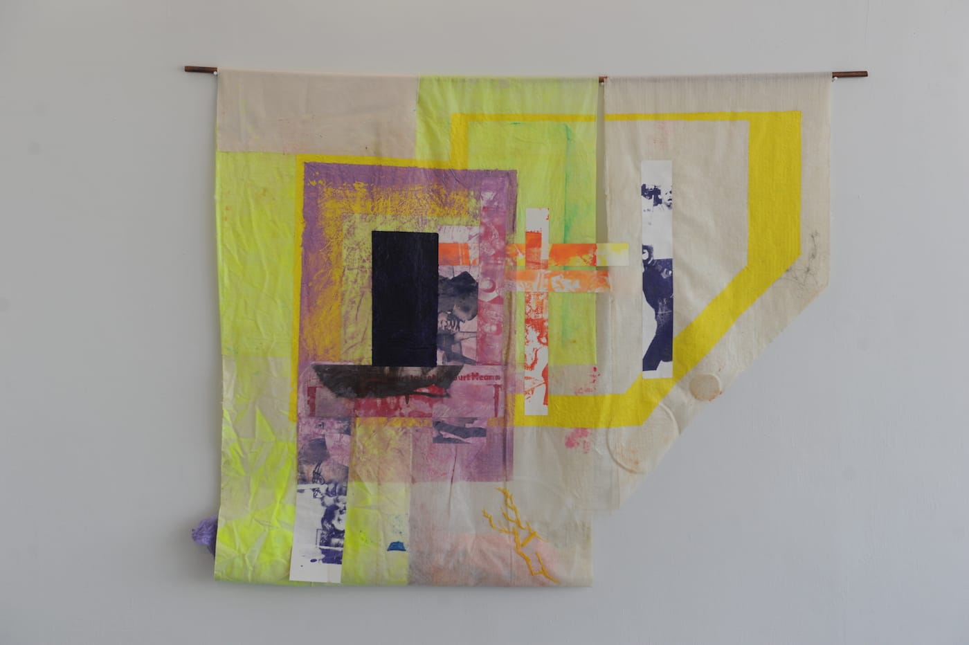 The artists in On Documentary Abstraction find ways to visually — and abstractly — allude to disturbing patterns and narratives in society. Jackson’s “Grape Drink Box (Anacostia Los Angeles Topeka McKinney)” (2017), a neon-tinged mixed media piece on gauze, references instances of brutality. McKinney, Texas is where, in 2015, police officer Eric Casebolt restrained Dajerria Becton, a black teenager, after attempting to break up a benign pool party of mostly black adolescents.