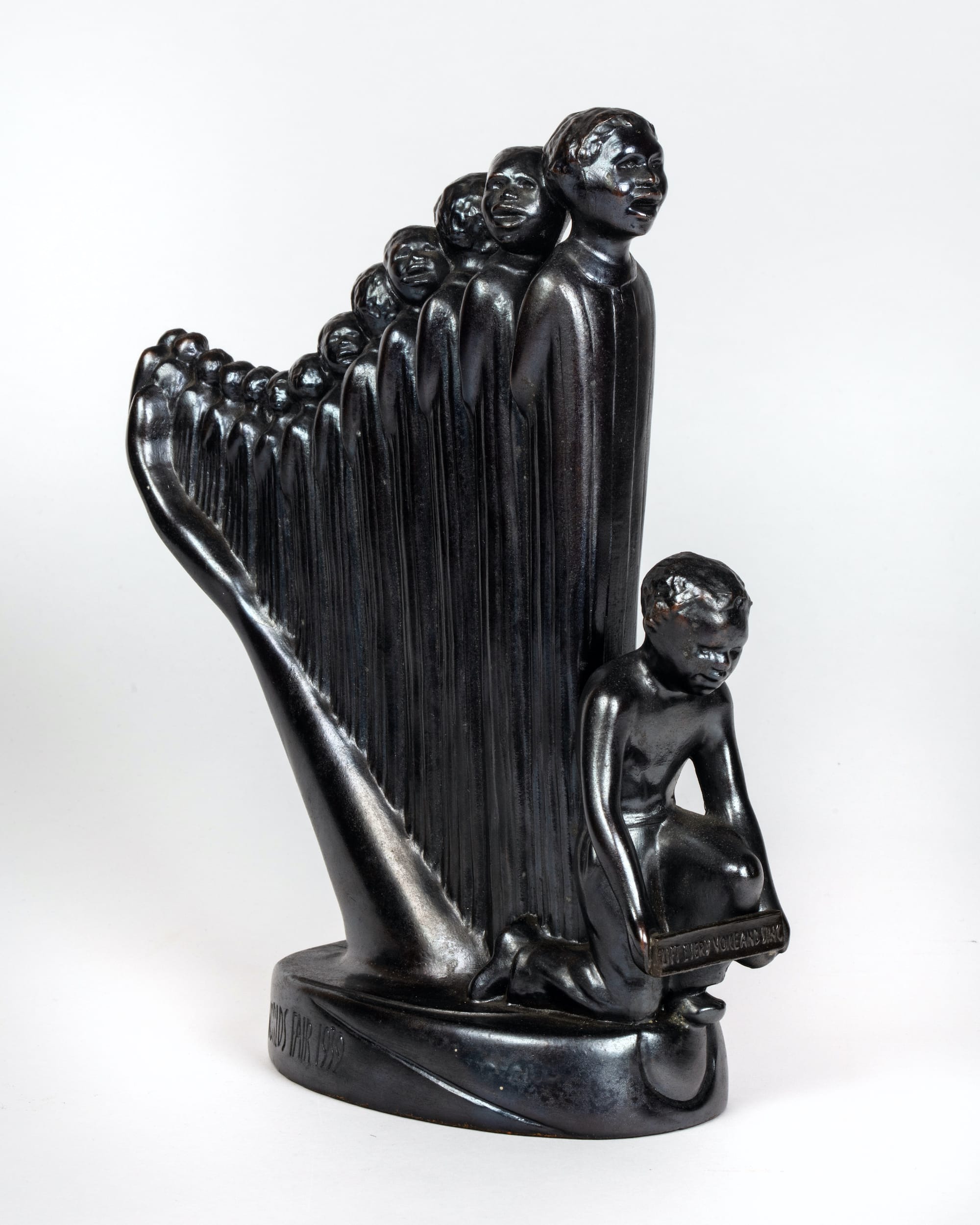 Augusta Savage, "Lift Every Voice and Sing (The Harp)" (1939), patinated metal, 10 3/4 x 9 1/2 x 4 inches; New-York Historical Society (image courtesy the Metropolitan Museum of Art, New York)