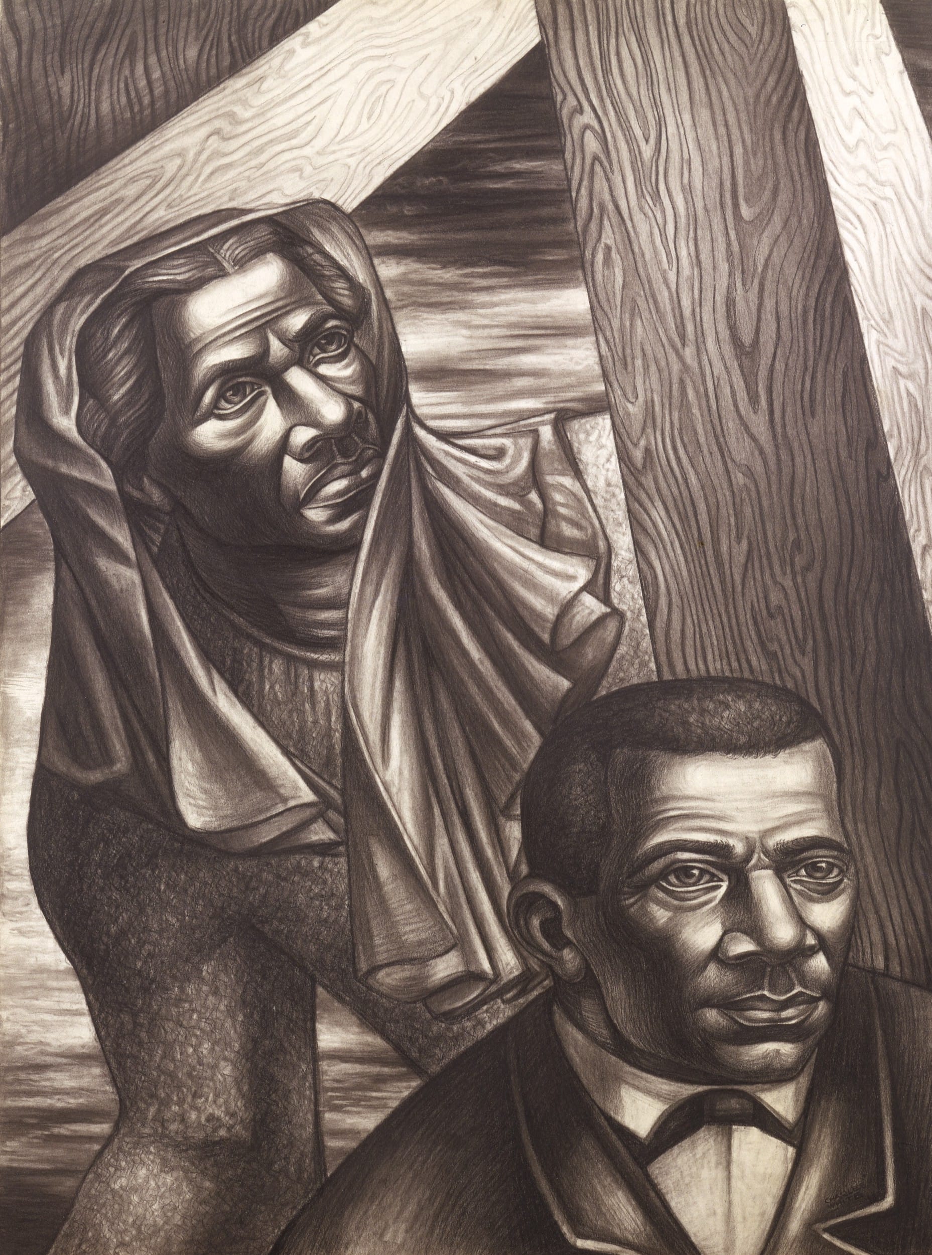 Charles White, "Sojourner Truth and Booker T. Washington" (1943), graphite on paperboard, 37 5/8 x 28 inches; the Newark Museum of Art (image courtesy the Metropolitan Museum of Art, New York)