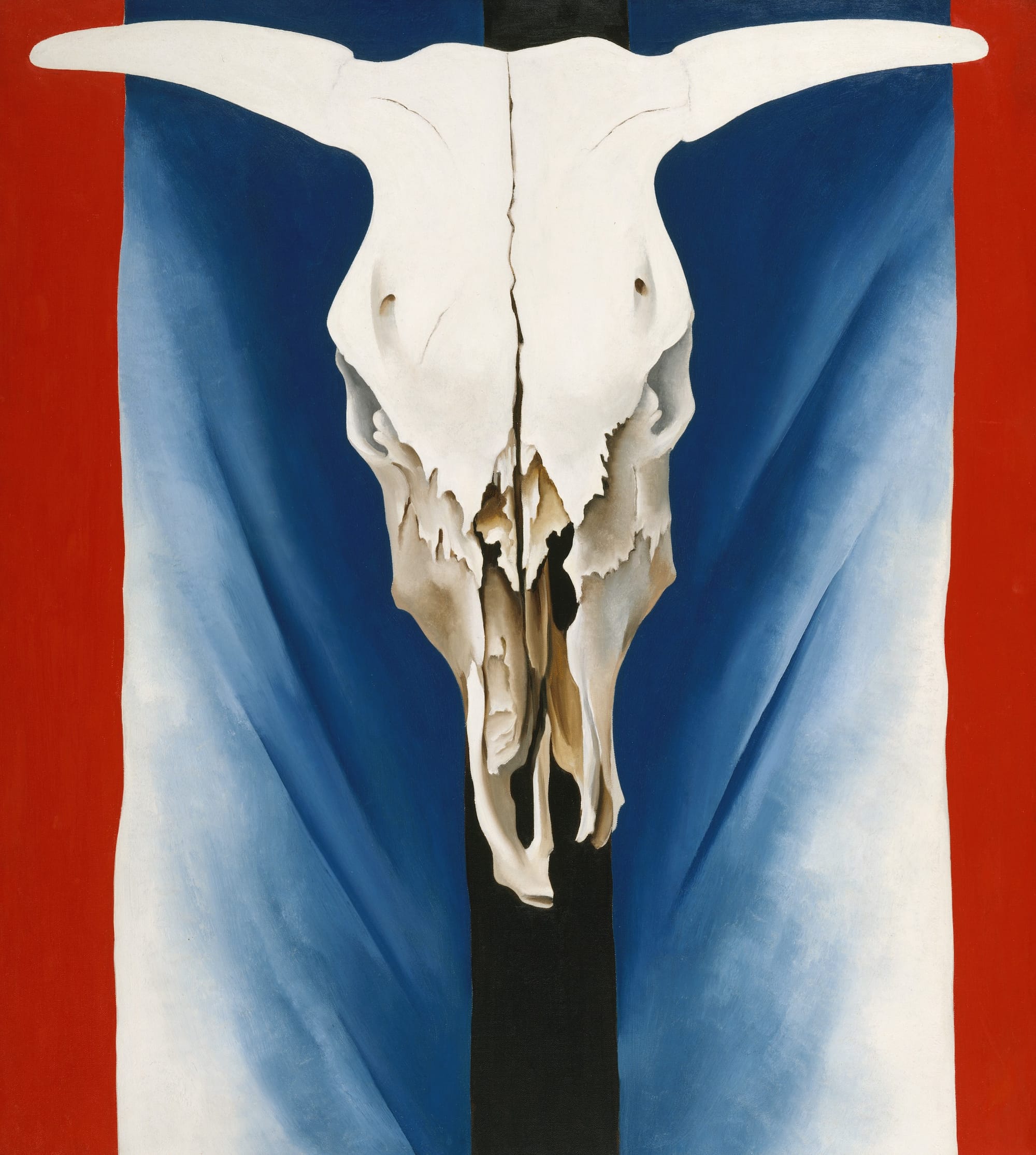 Georgia O'Keeffe, "Cow's Skull: Red, White, and Blue" (1931), oil on canvas, 39 7/8 × 35 7/8 inches; the Metropolitan Museum of Art, New York, Alfred Stieglitz Collection (image © the Metropolitan Museum of Art, New York)