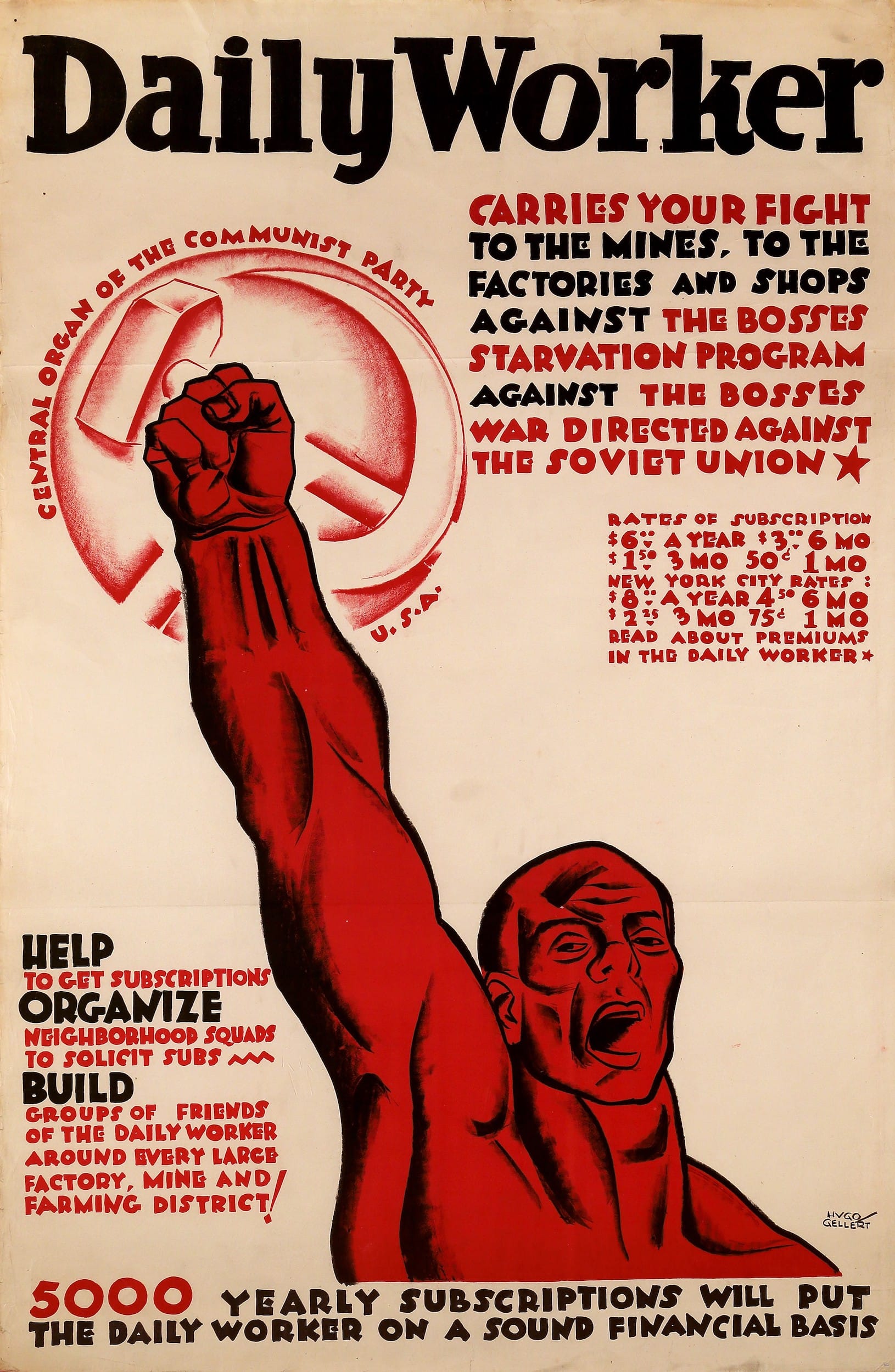 Hugo Gellert, Daily Worker poster (c. 1935), lithograph, 38 1/8 × 25 1/4 inches; Merrill C. Berman Collection, Rye, NY (image courtesy the Metropolitan Museum of Art, New York)