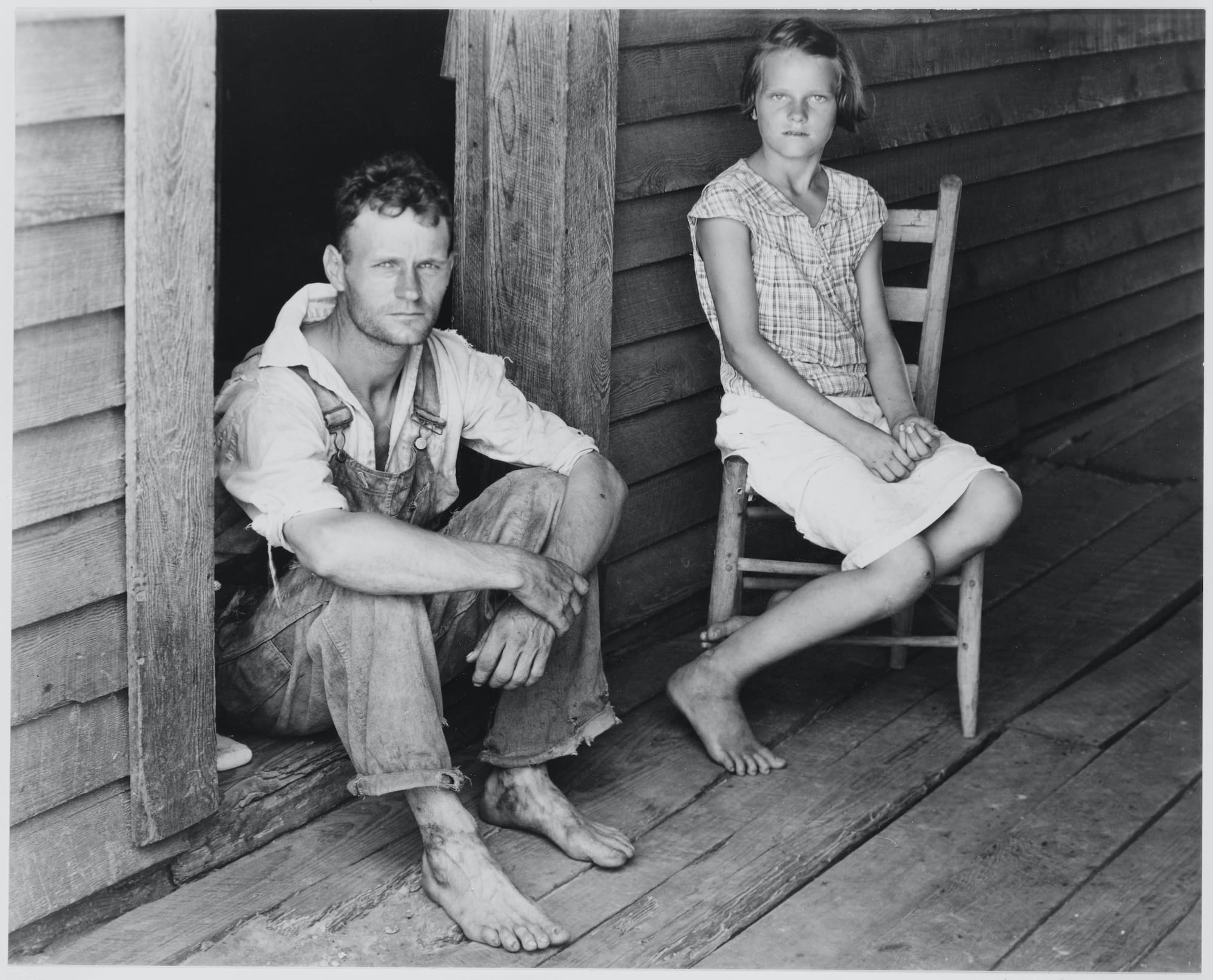 Walker Evans, "Floyd and Lucille Burroughs on Porch, Hale County, Alabama" (1936), gelatin silver print, 7 7/16 x 9 5/16 inches; the Metropolitan Museum of Art (© Walker Evans Archive, The Metropolitan Museum of Art)